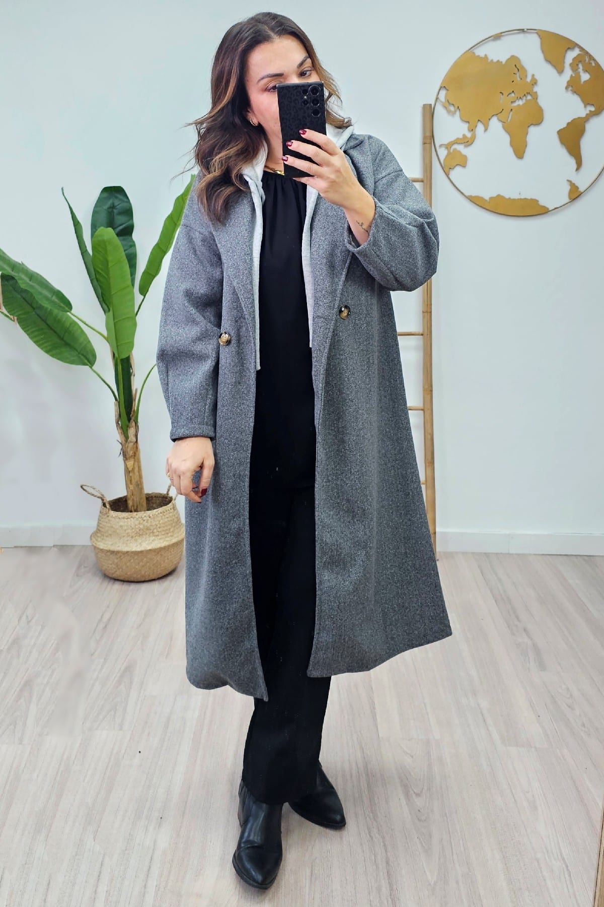 Abrigo Largo Capucha Marengo. Chaquetas tallas grandes