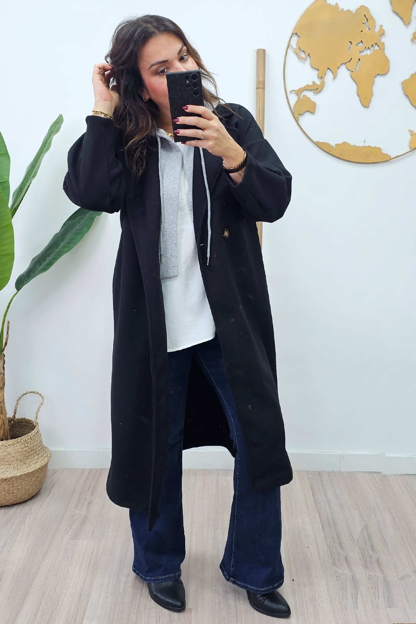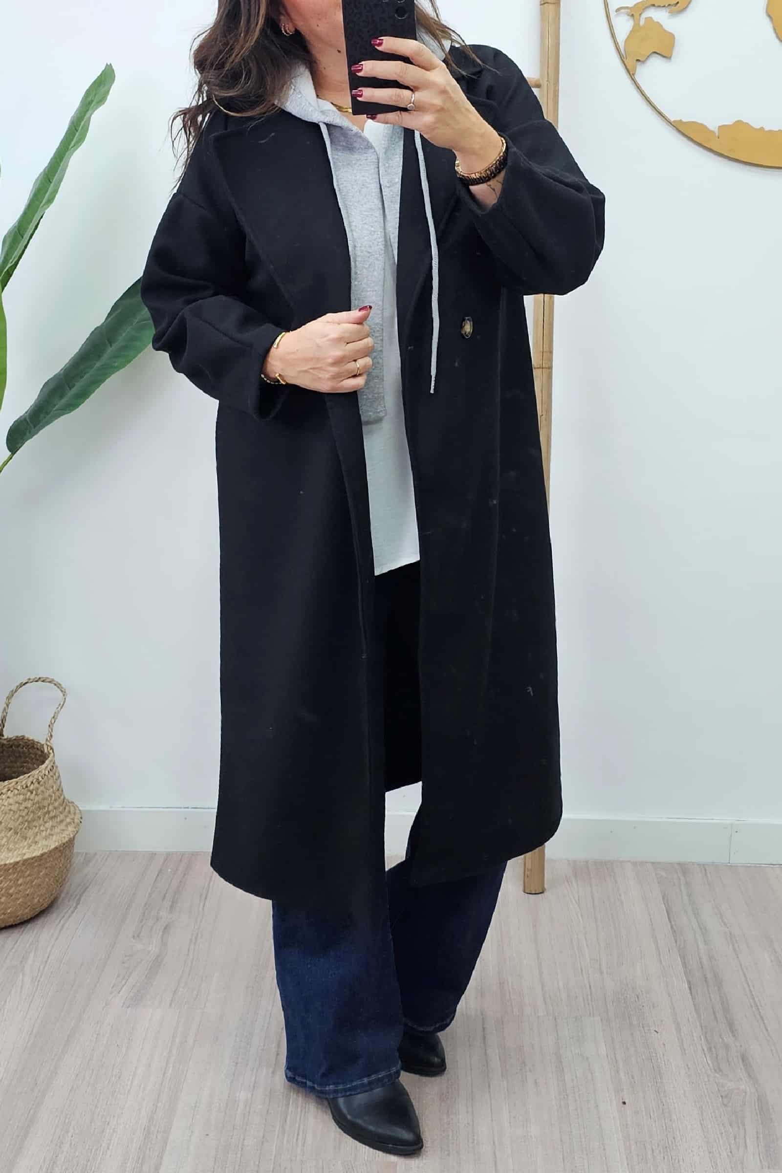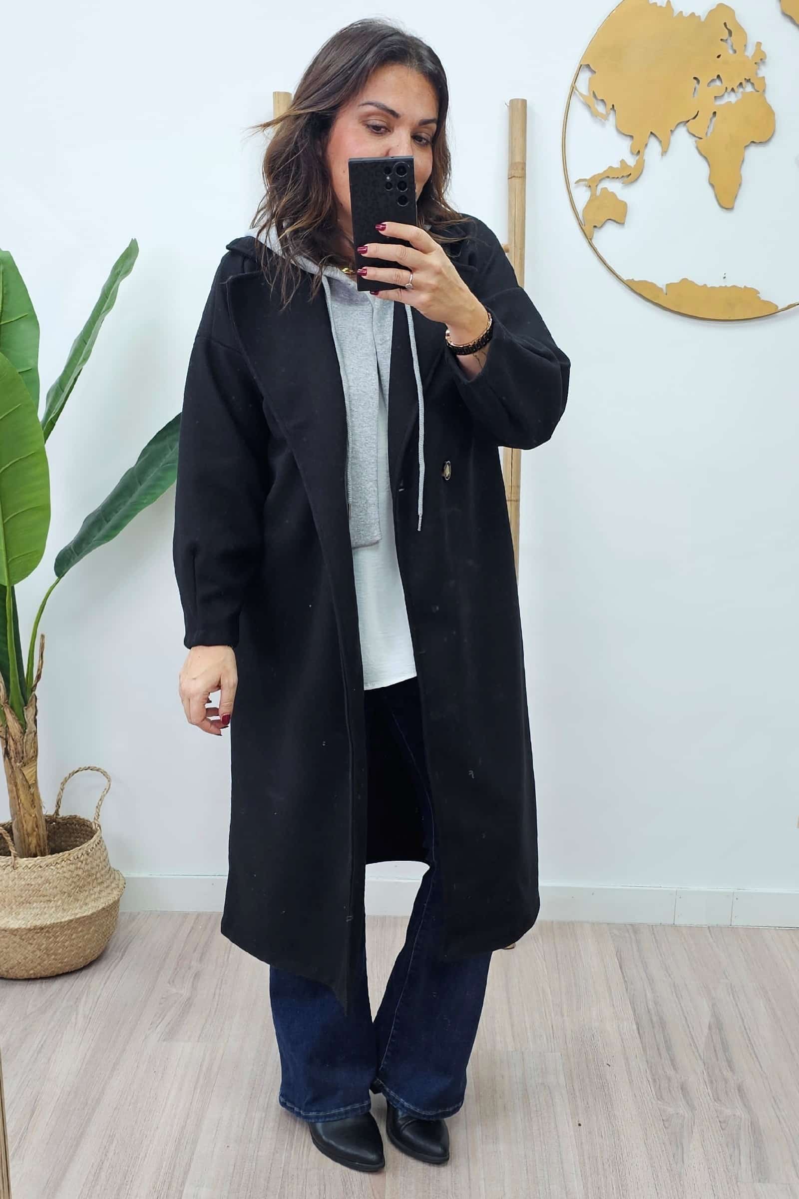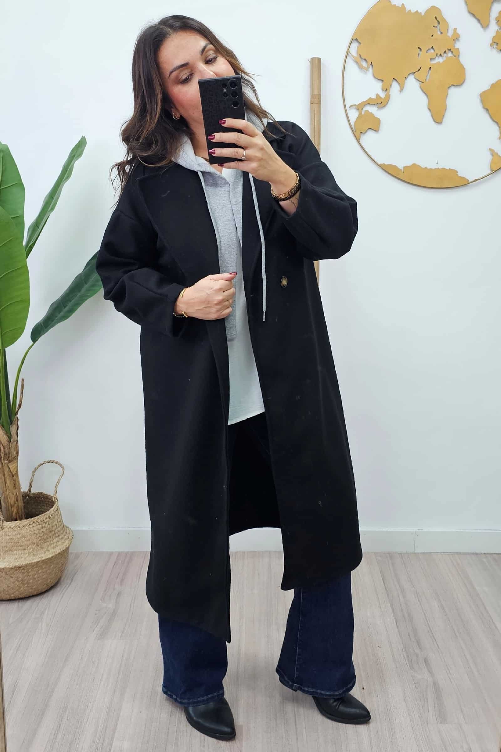 Abrigo Largo Capucha Negro. Chaquetas tallas grandes
