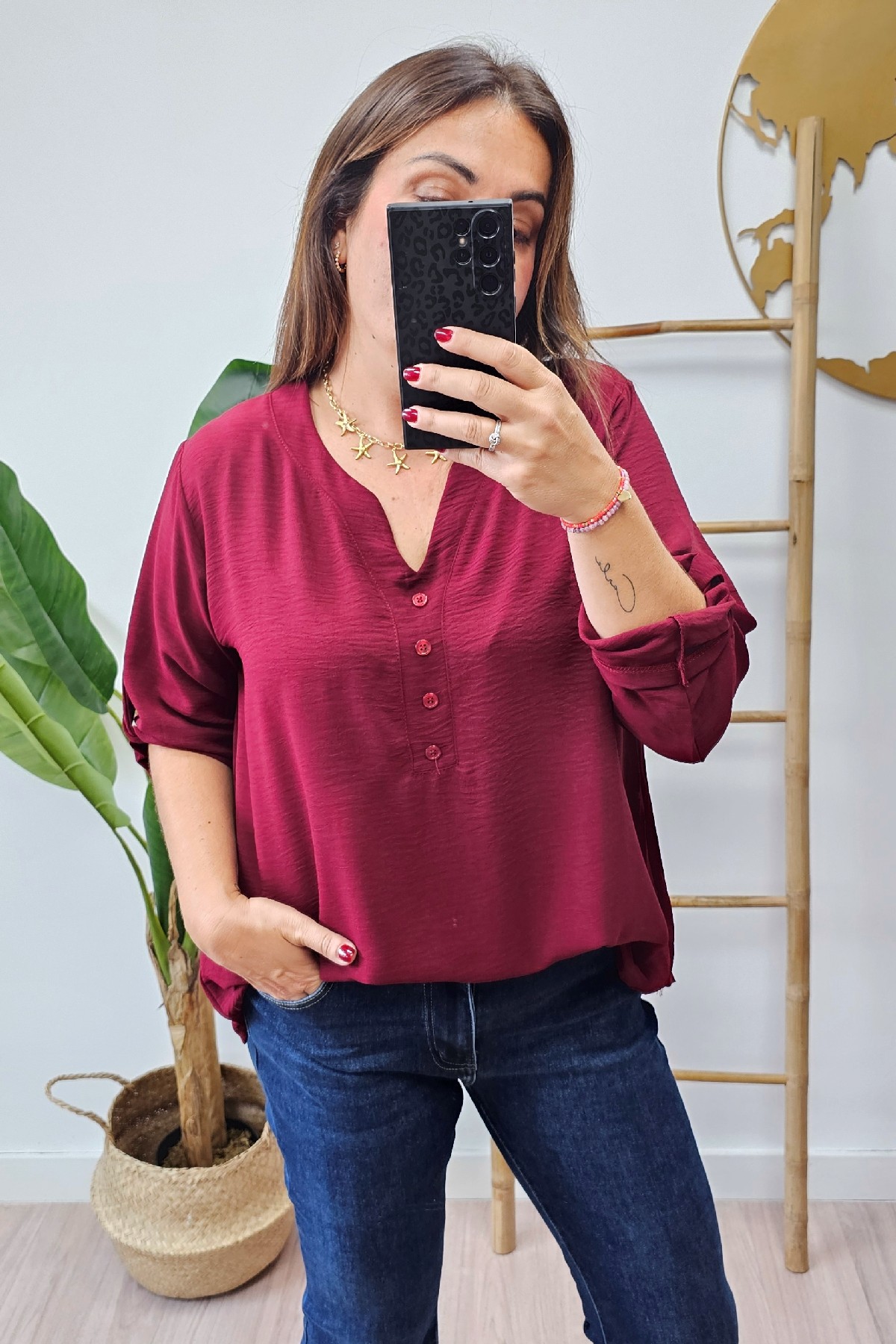 Blusa Lara Burdeos. Blusas Tallas Grandes.
