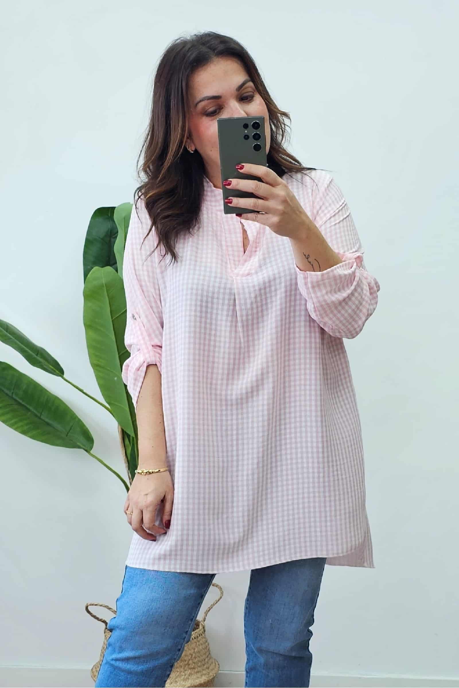 Blusa Larga Vichy Rosa. Blusas Tallas Grandes.