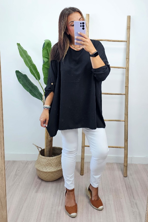 Blusa Oversize Negra. Blusas Tallas Grandes.