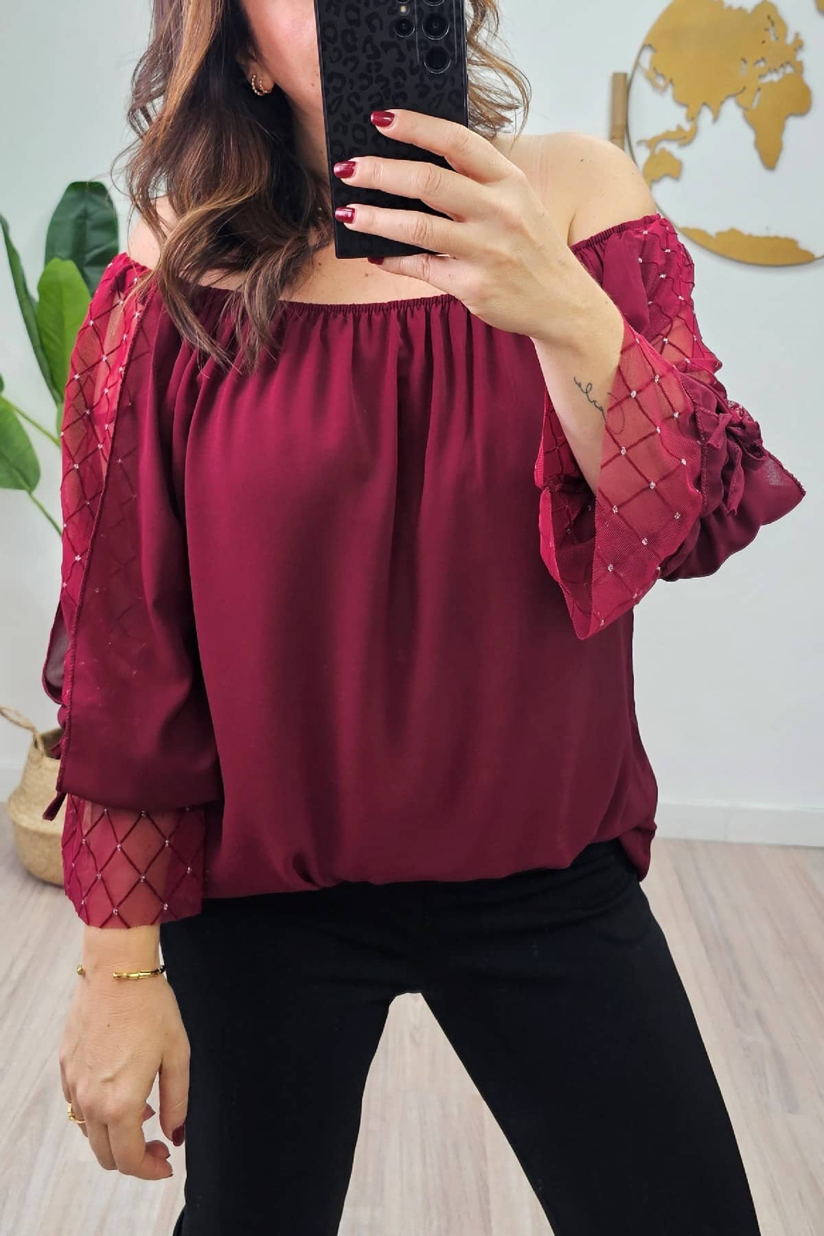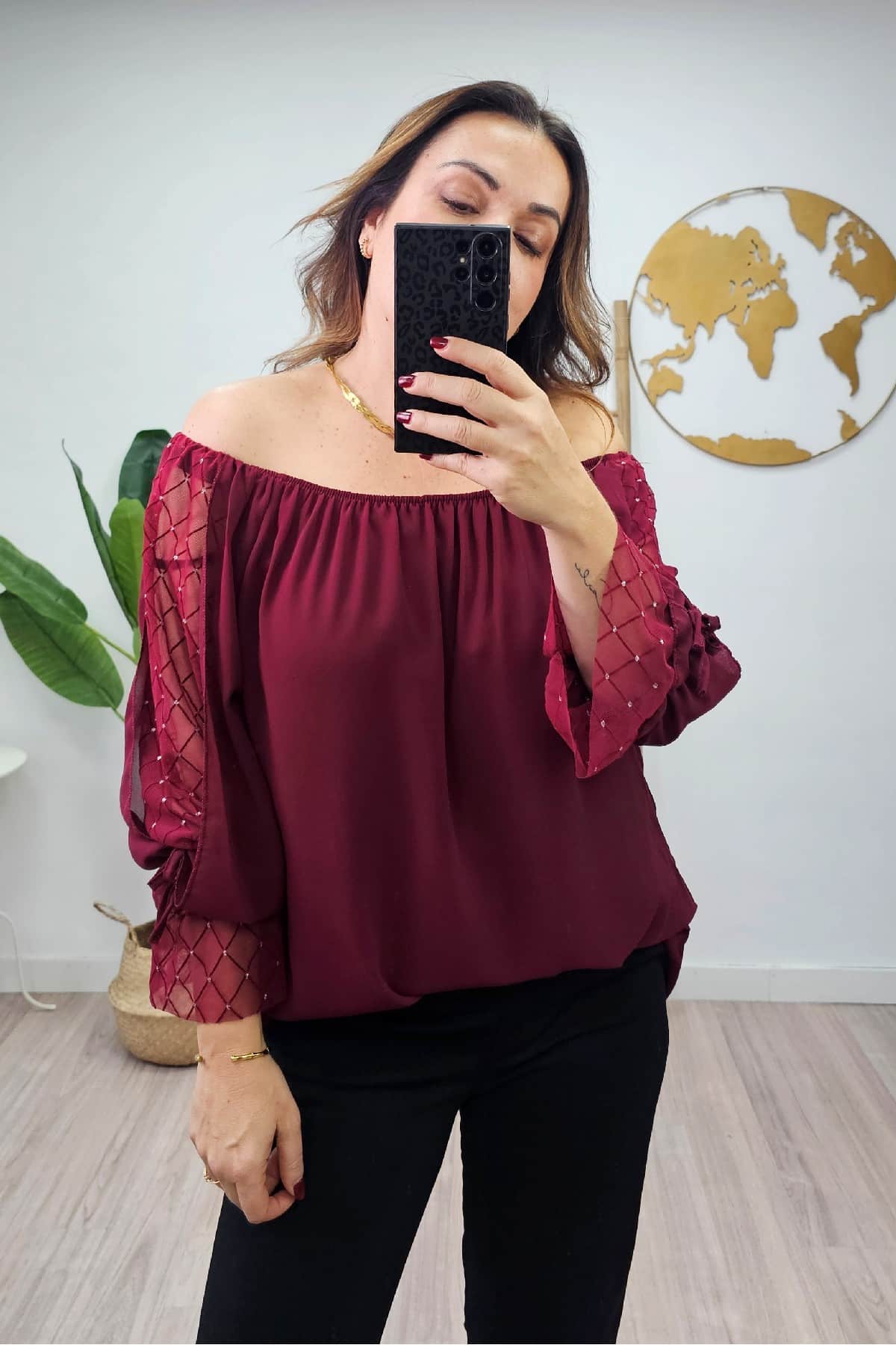 Blusa Samantha Burdeos. Blusas tallas grandes.