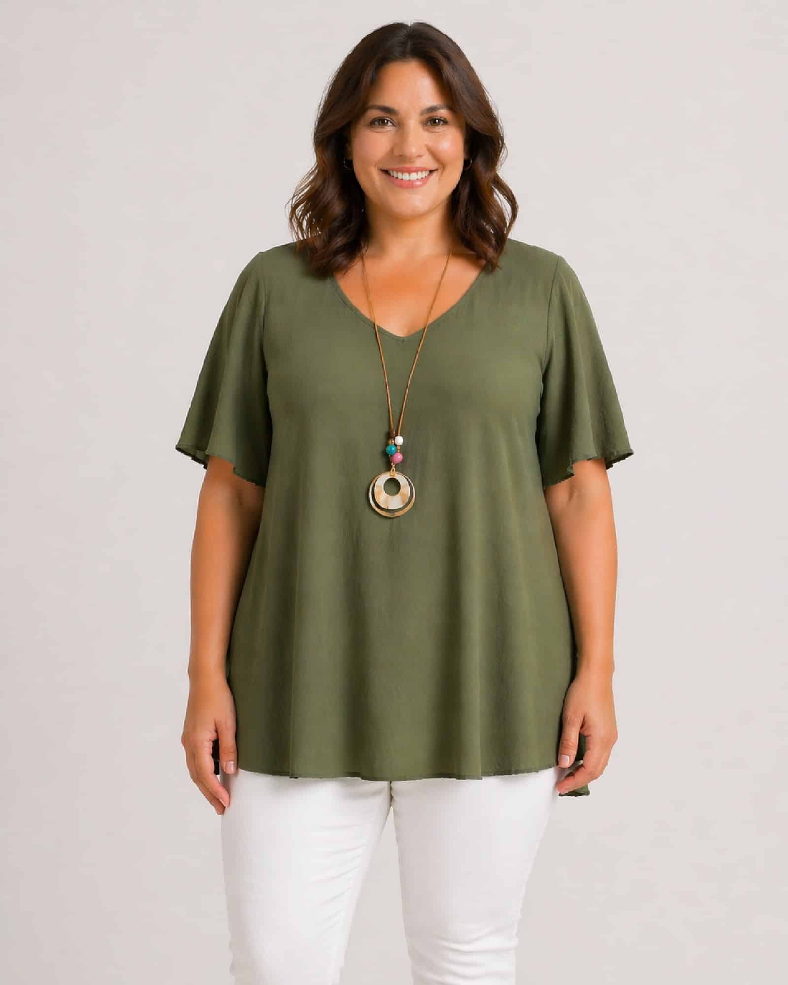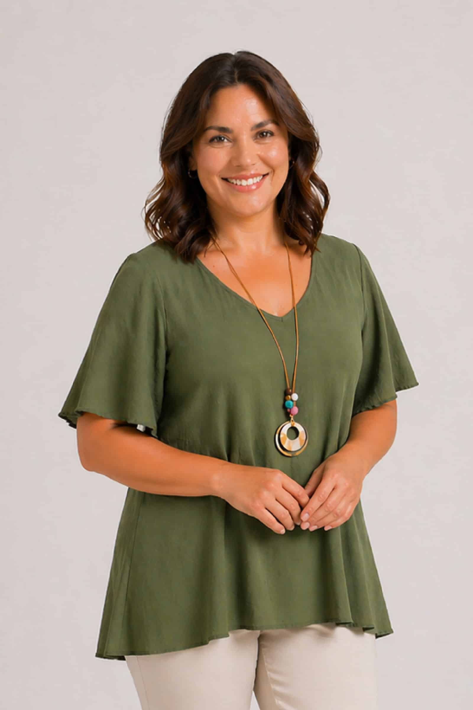 Blusa Sevilla Kaki. Blusas Tallas Grandes.