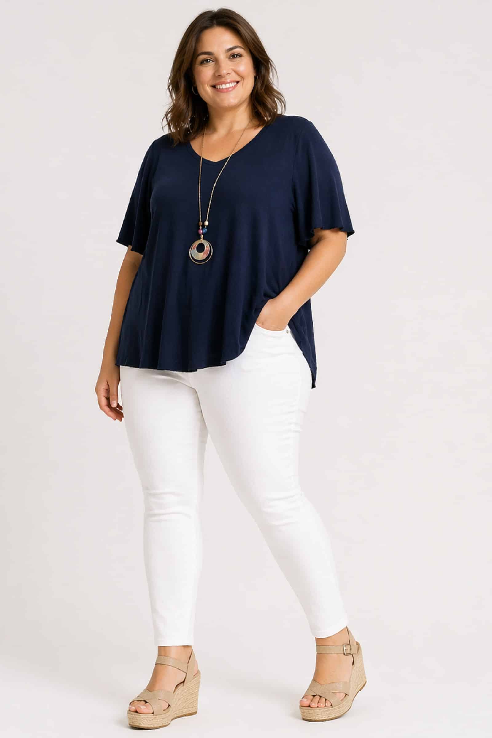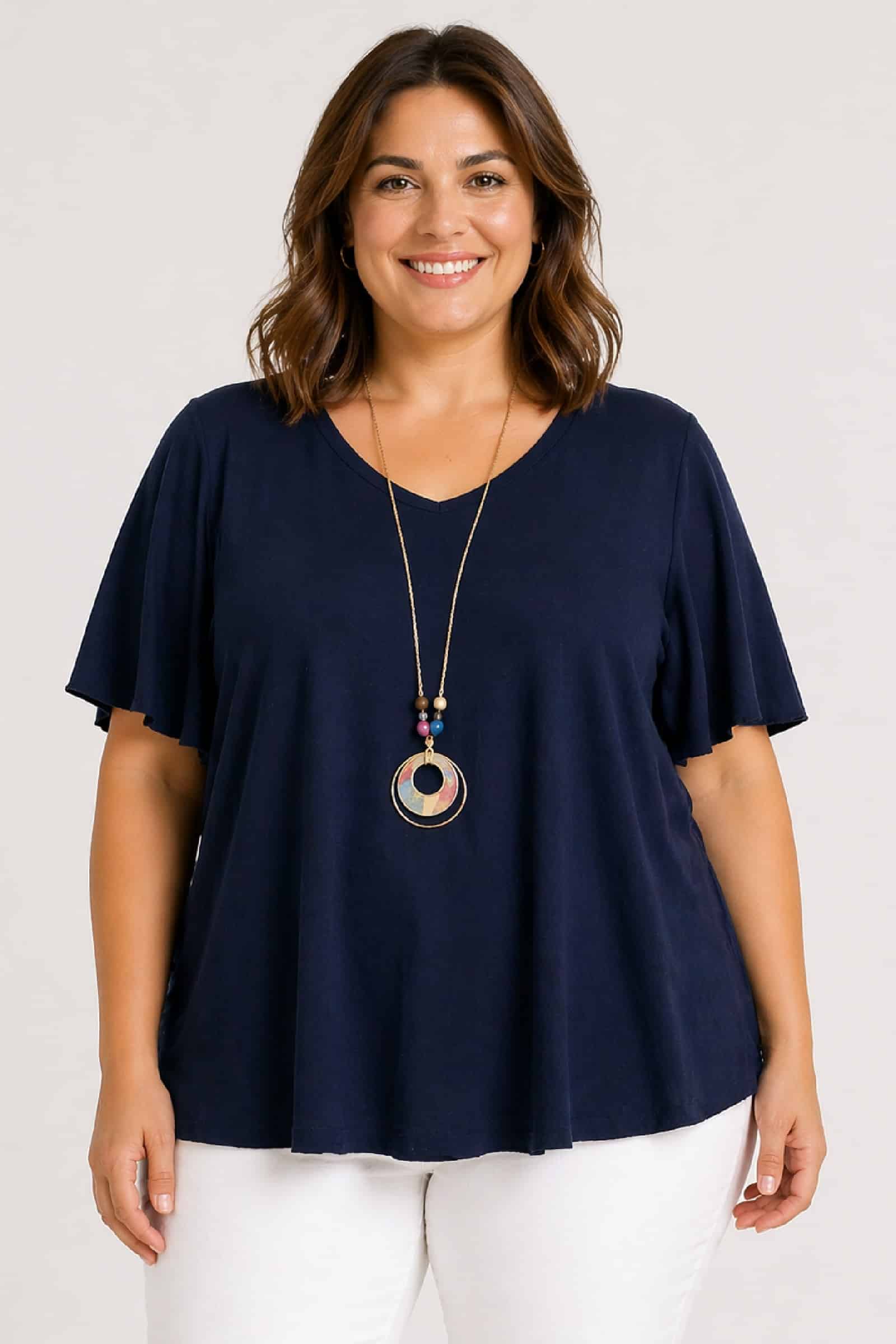 Blusa Sevilla Marino. Blusas Tallas Grandes.