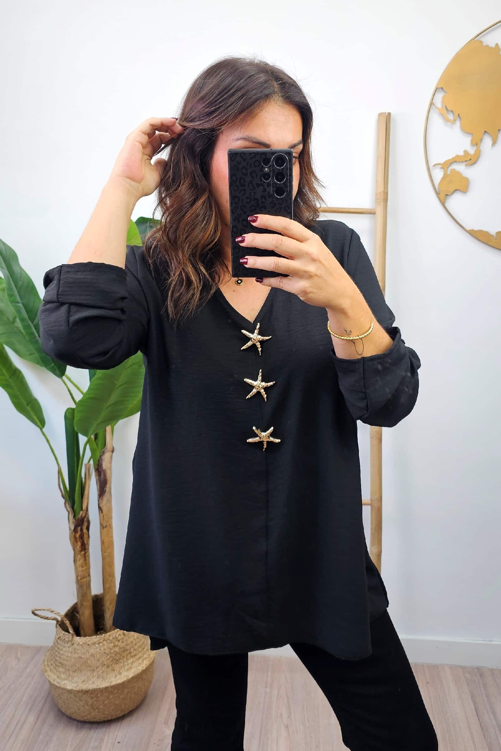 Blusa Starfish Negra. Blusas Tallas Grandes.