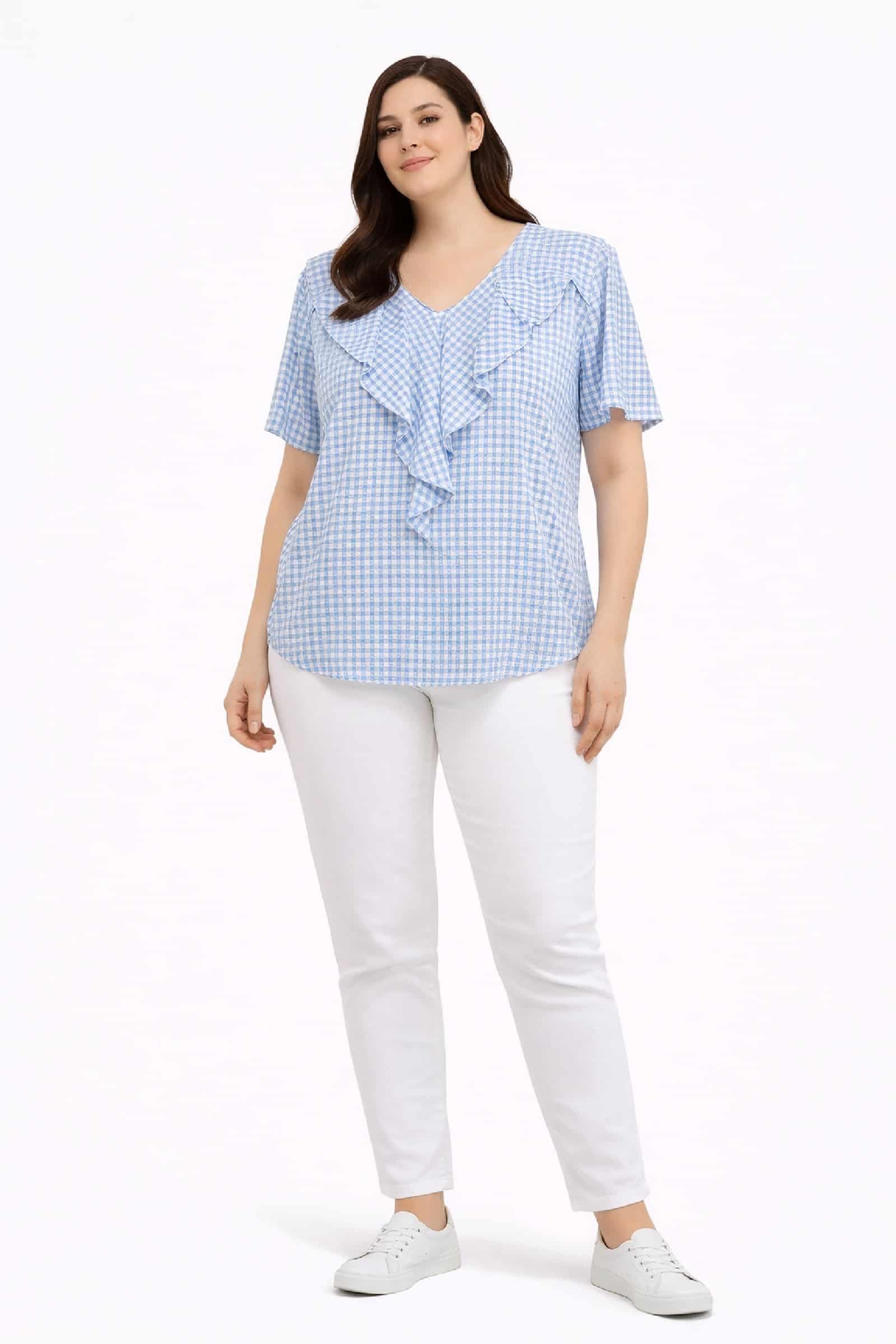 Blusa Vichy Azul. Blusas Tallas Grandes.