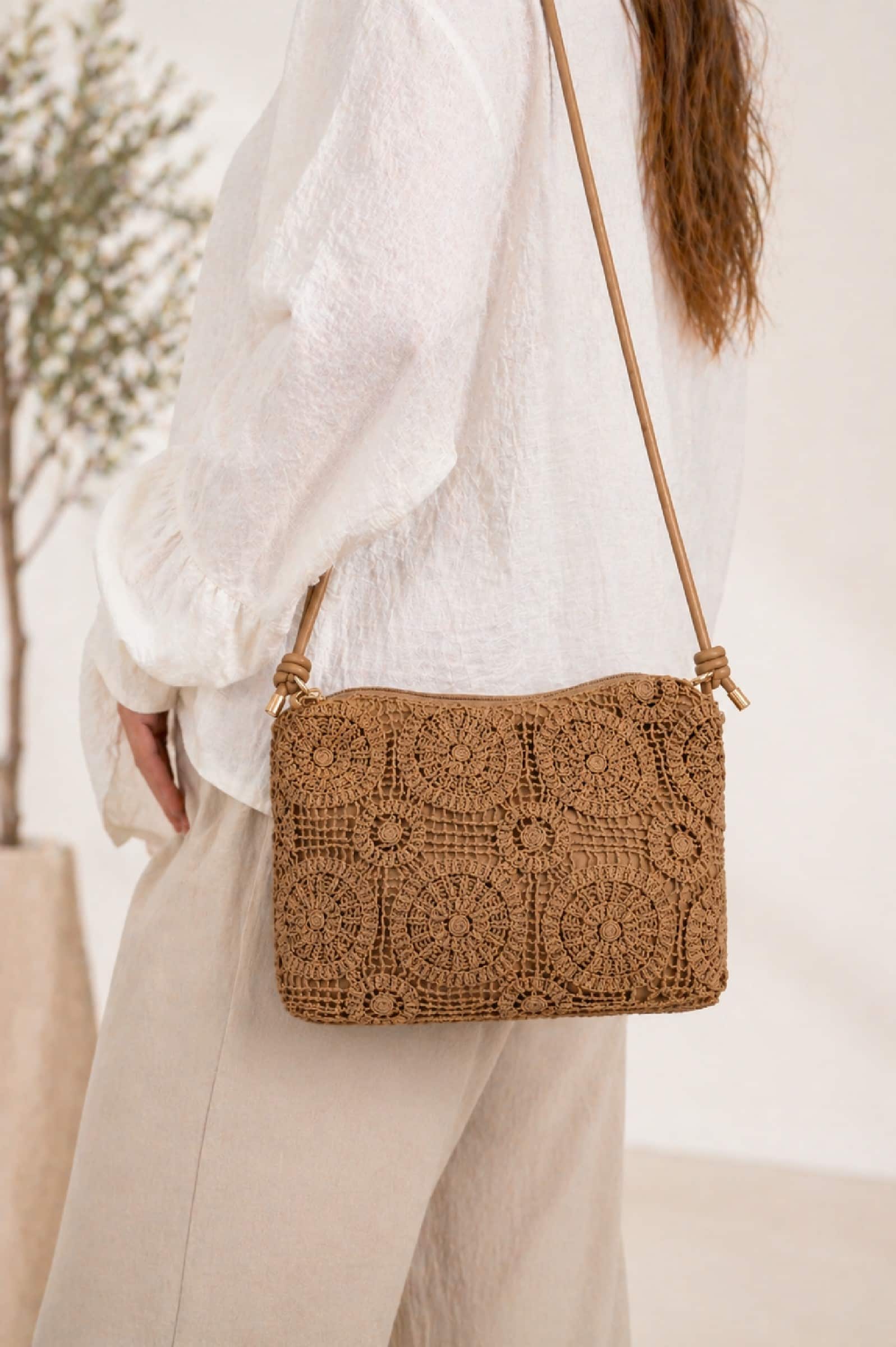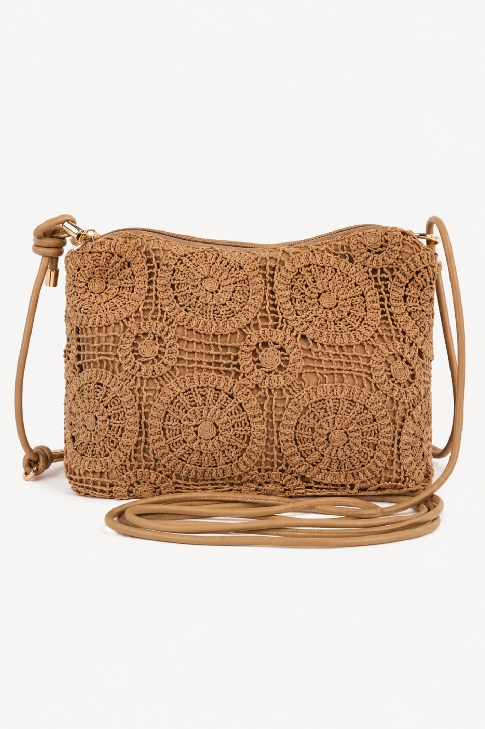 Bolso Crochet Camel. Complementos Ultima Tendencia.