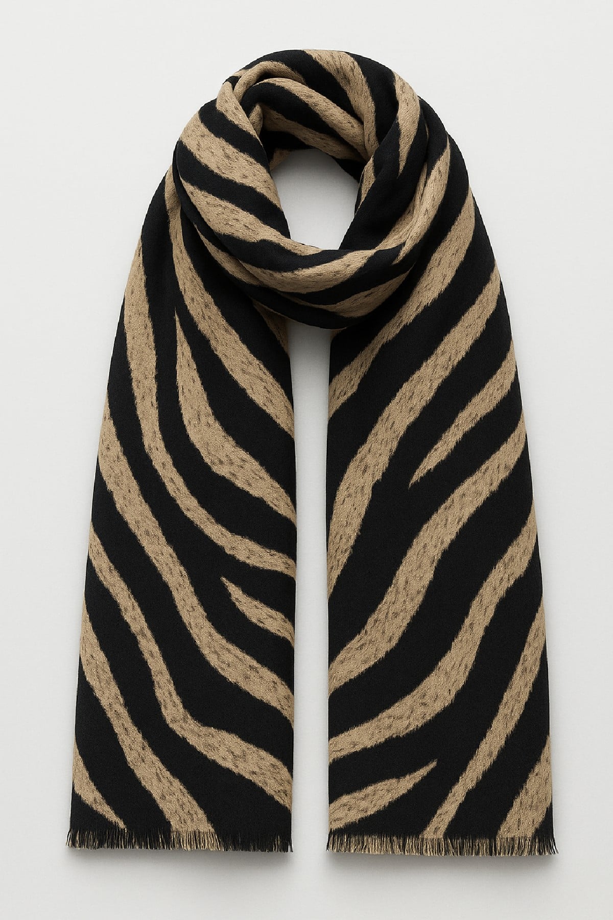 Bufanda Cebra Camel. Complementos Ultima Tendencia.