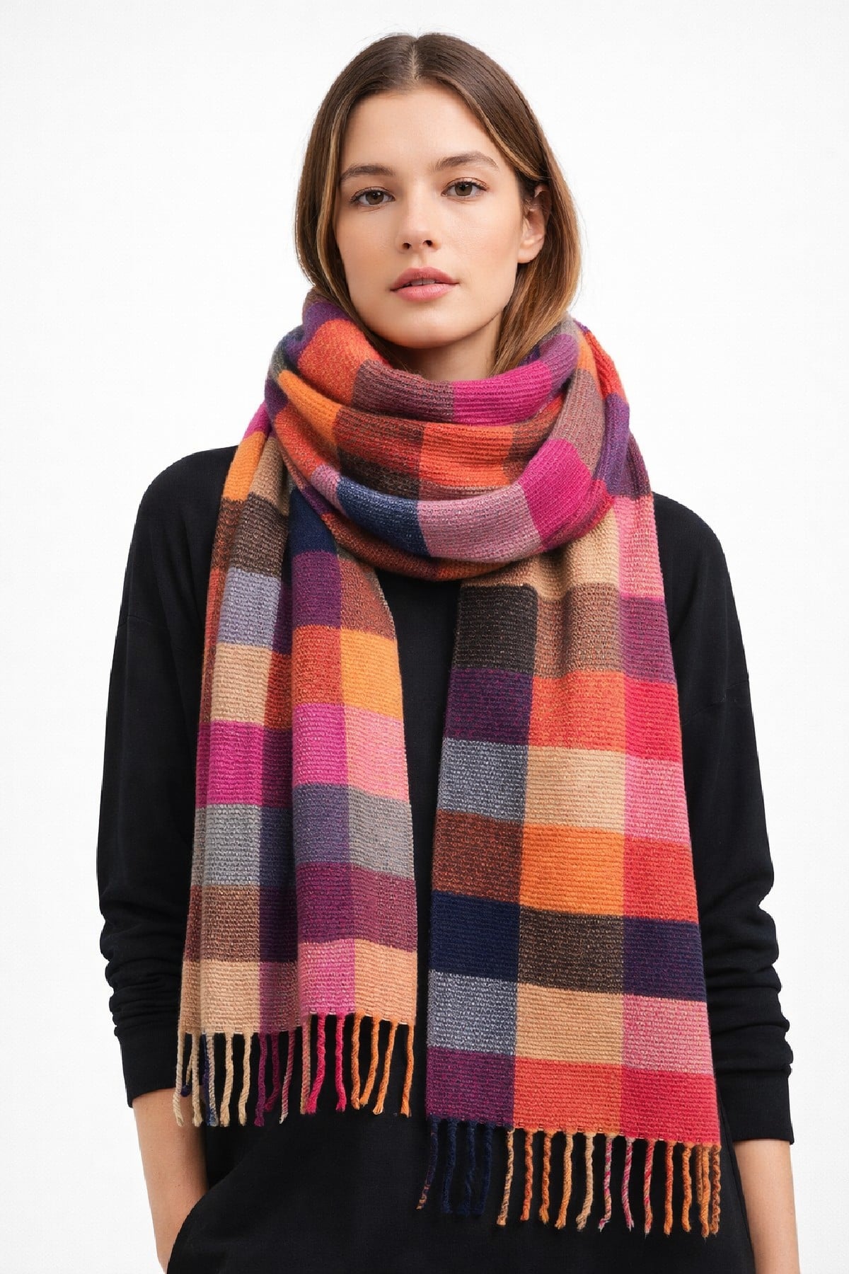 Bufanda Cuadros Fucsia. Complementos Ultima Tendencia.