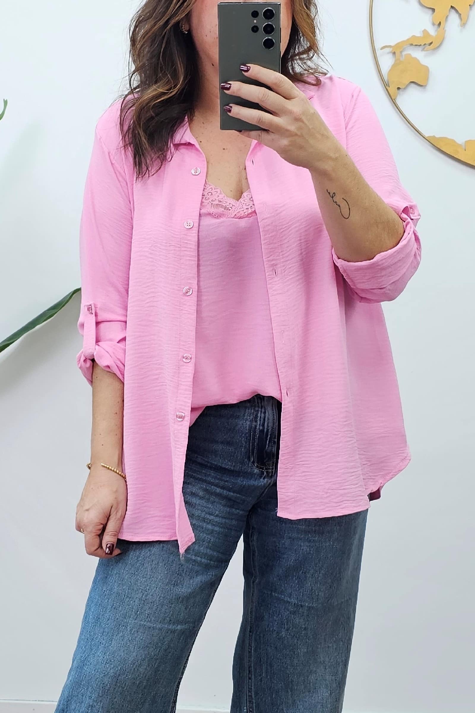Camisa Graciela Rosa. Blusas Tallas Grandes.