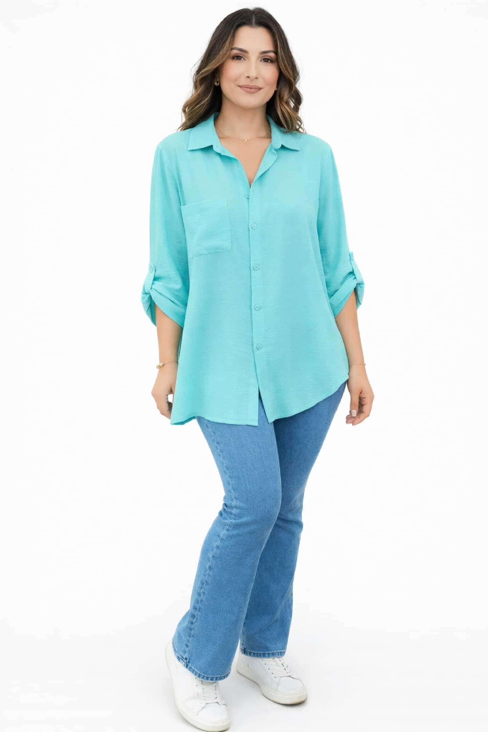 Camisa Larga Basic Aguamarina. Blusa Tallas Grandes.