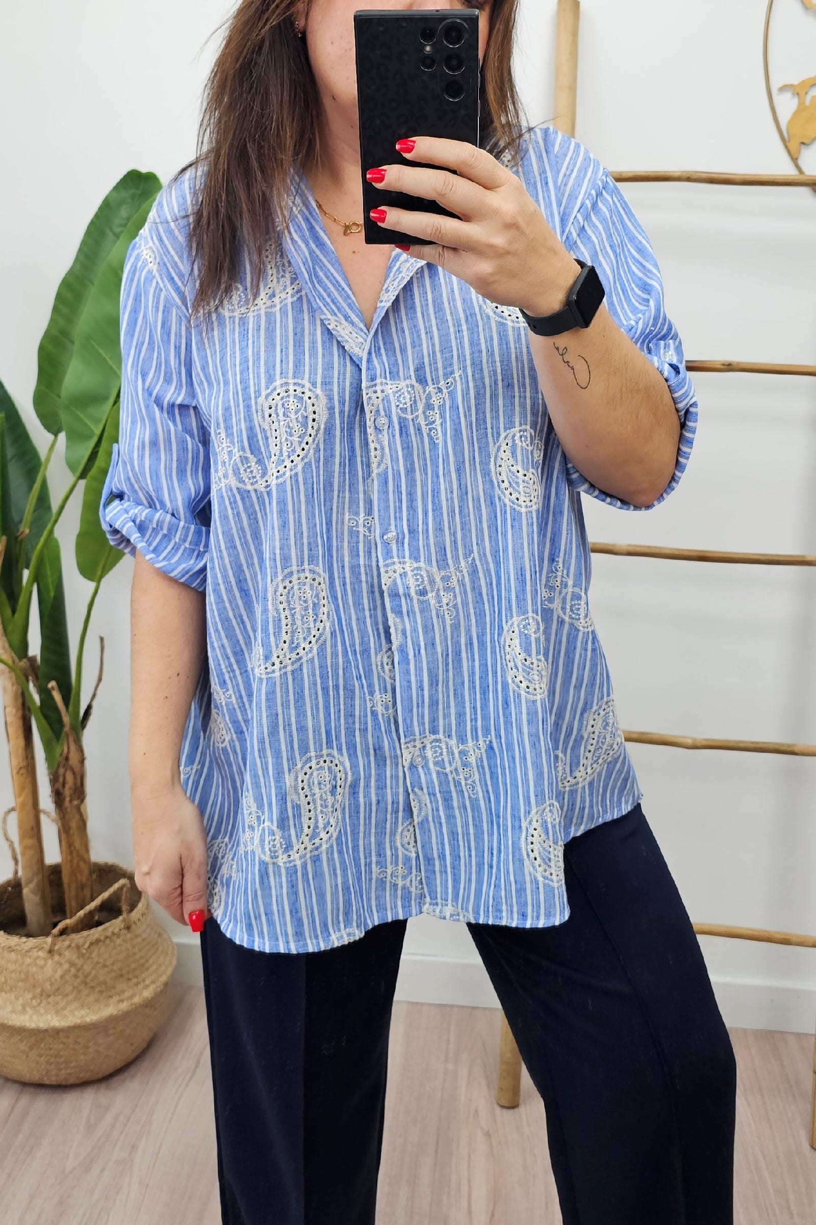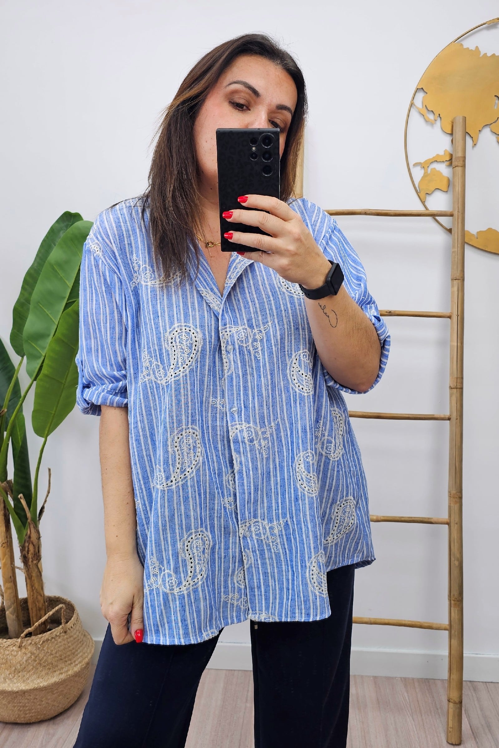 Camisa Rayas Cachemir. Blusa Tallas Grandes.