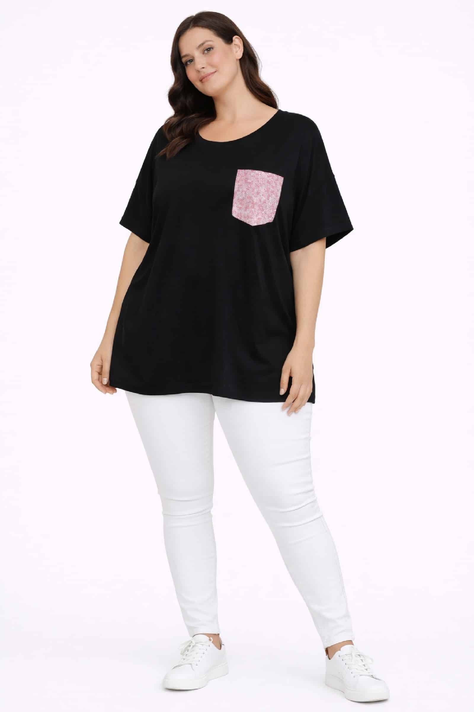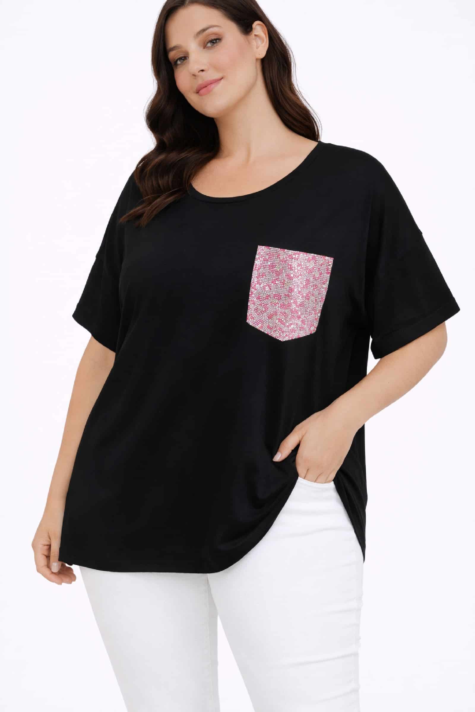 Camiseta Bolsillo Strass Negra. Camisetas Tallas Grandes.