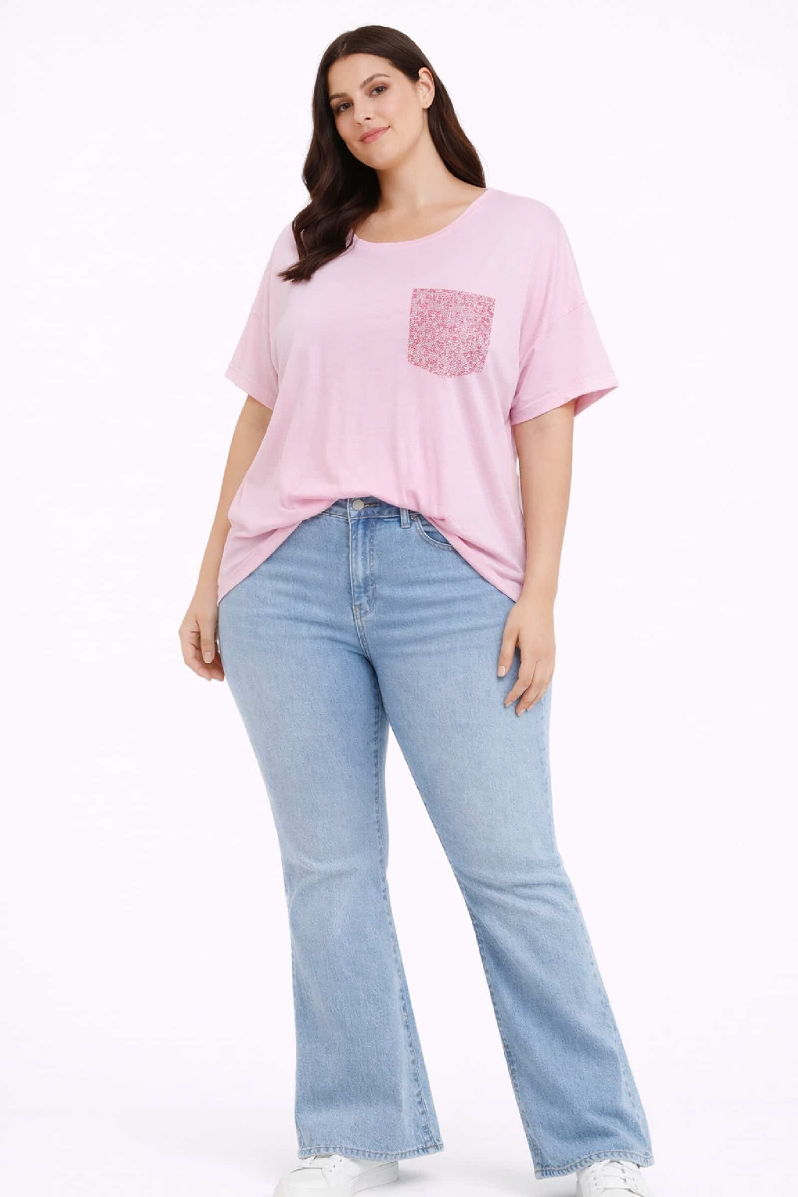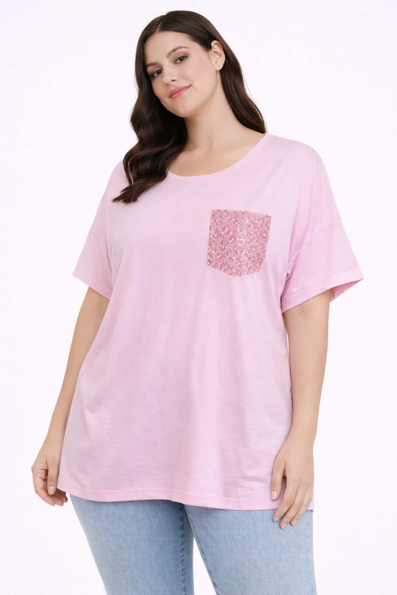 Camiseta Bolsillo Strass Rosa. Camisetas Tallas Grandes.
