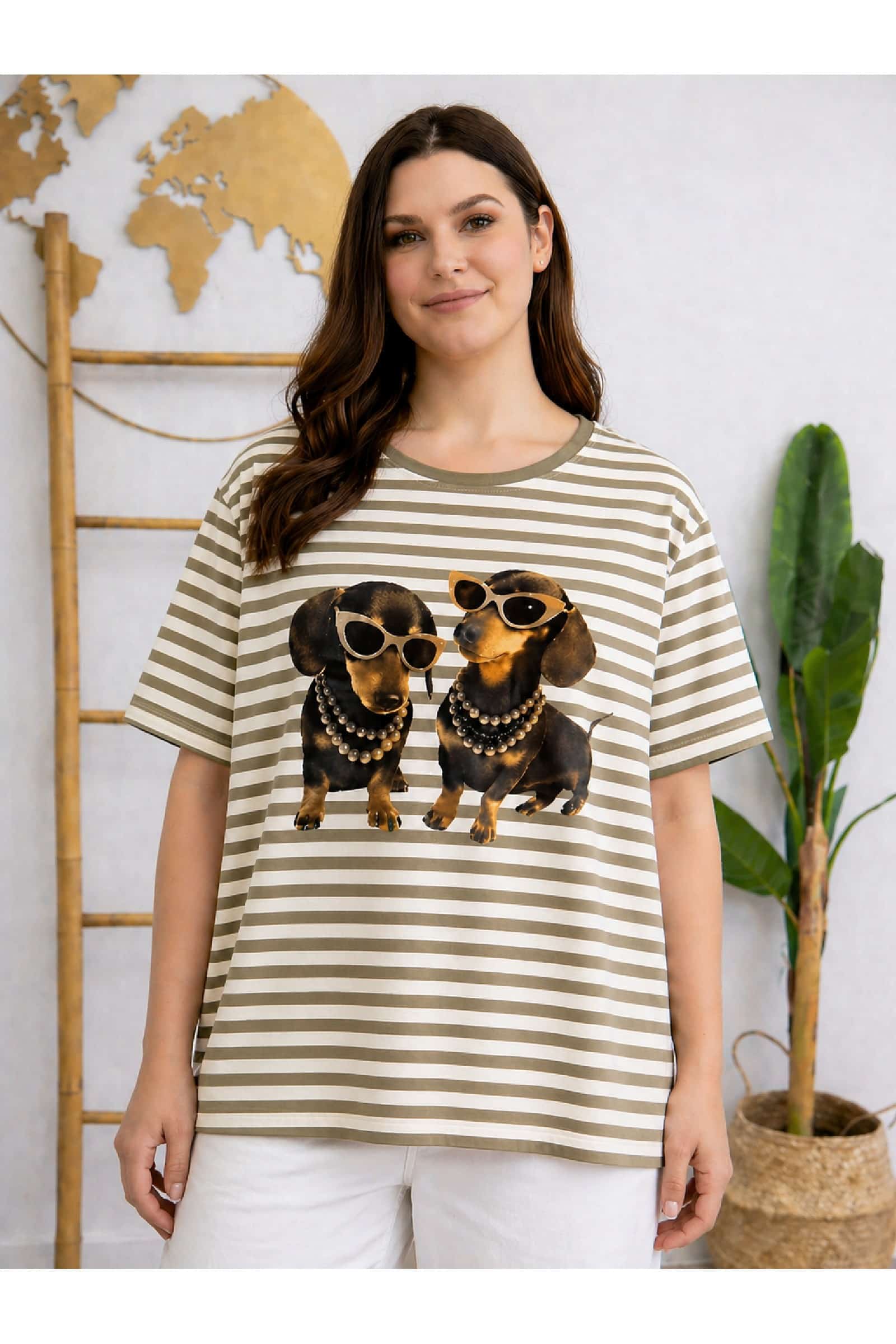 Camiseta Rayas Dog Kaki. Blusas Tallas Grandes.