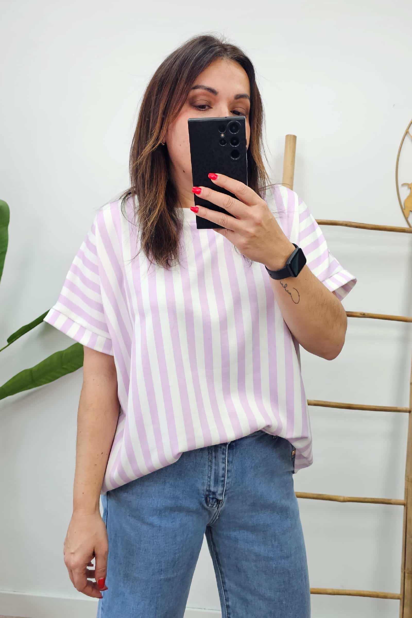 Camiseta Rayas Lila. Camisetas Tallas Grandes.