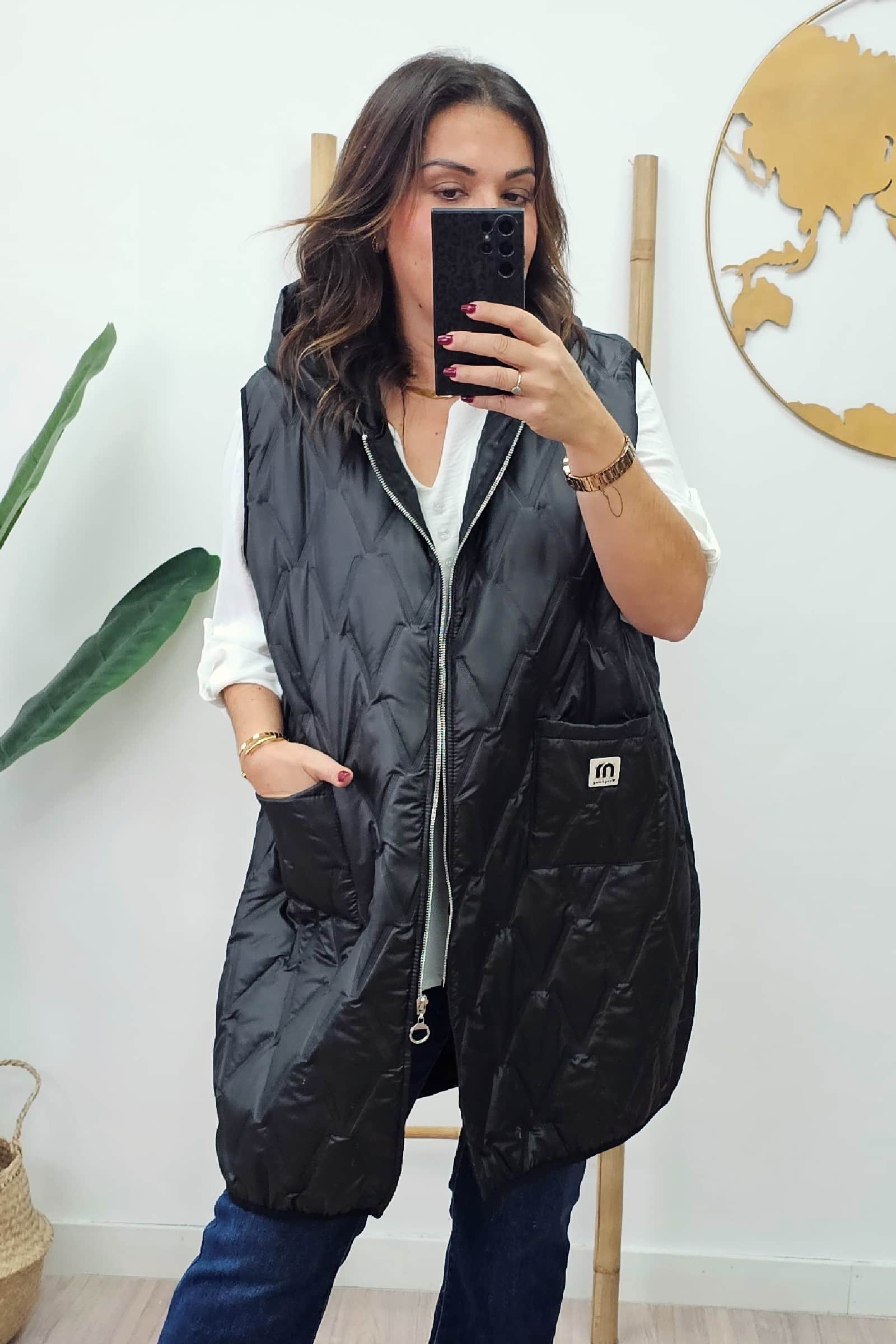 Chaleco Acolchado Negro. Camisetas tallas grandes.