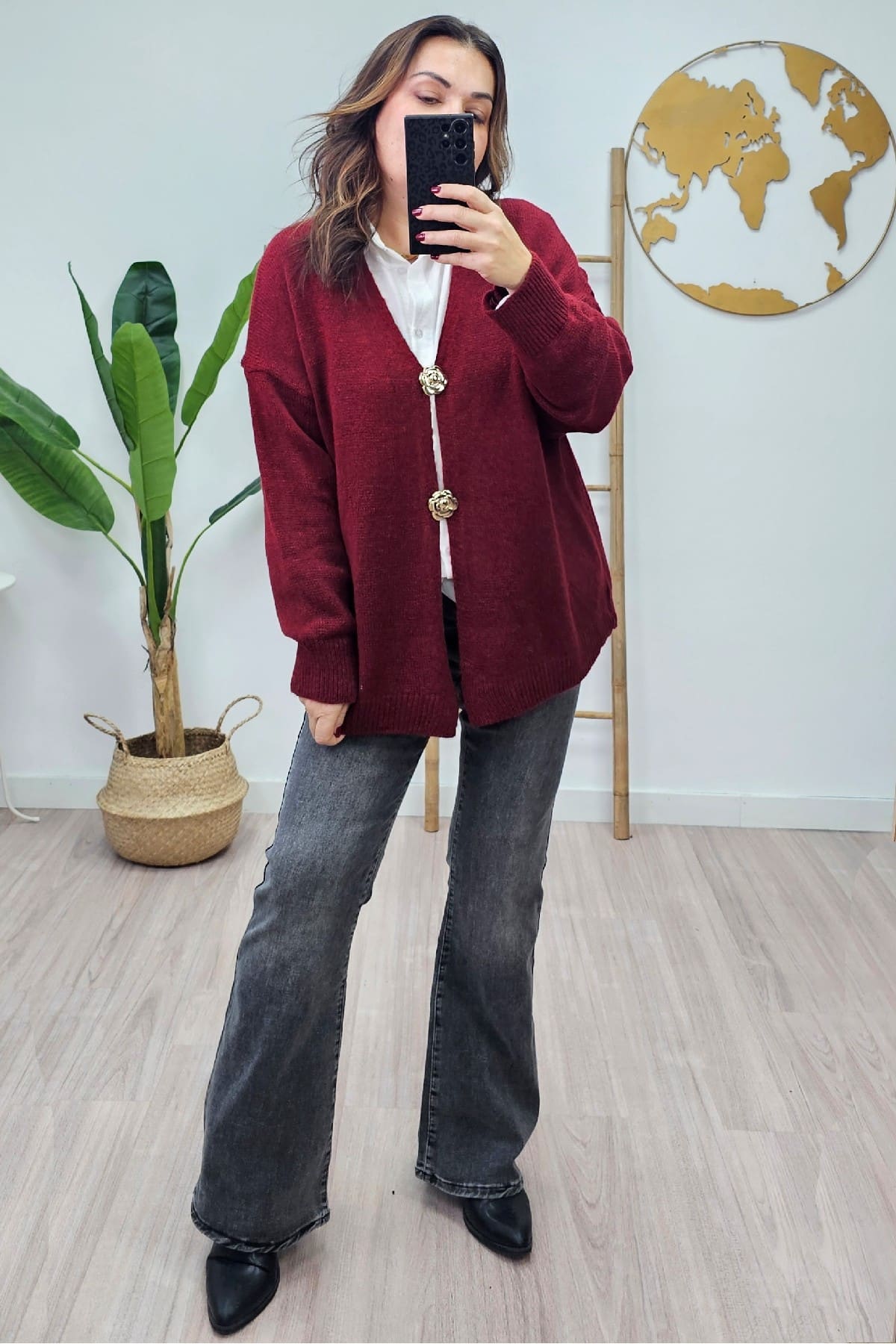 Chaqueta Broche Burdeos. Chaquetas tallas grandes