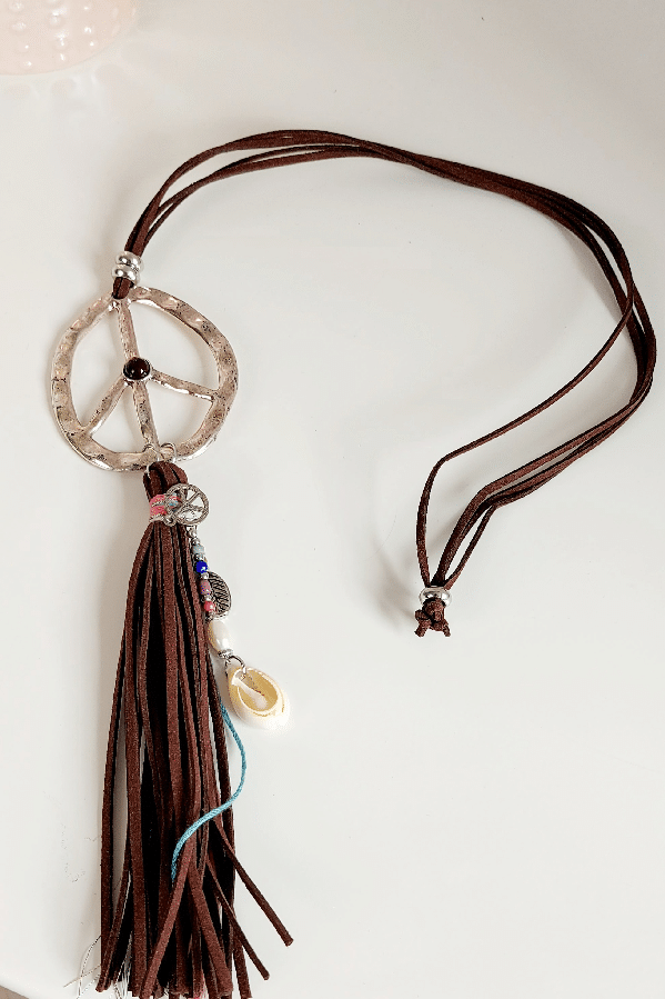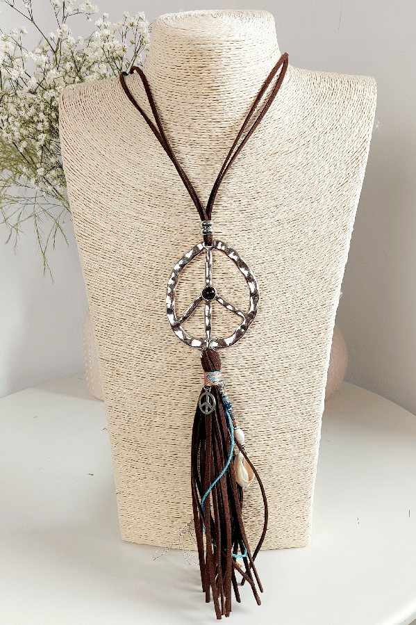 Collar Largo Peace Marron. Complementos Ultima Tendencia.