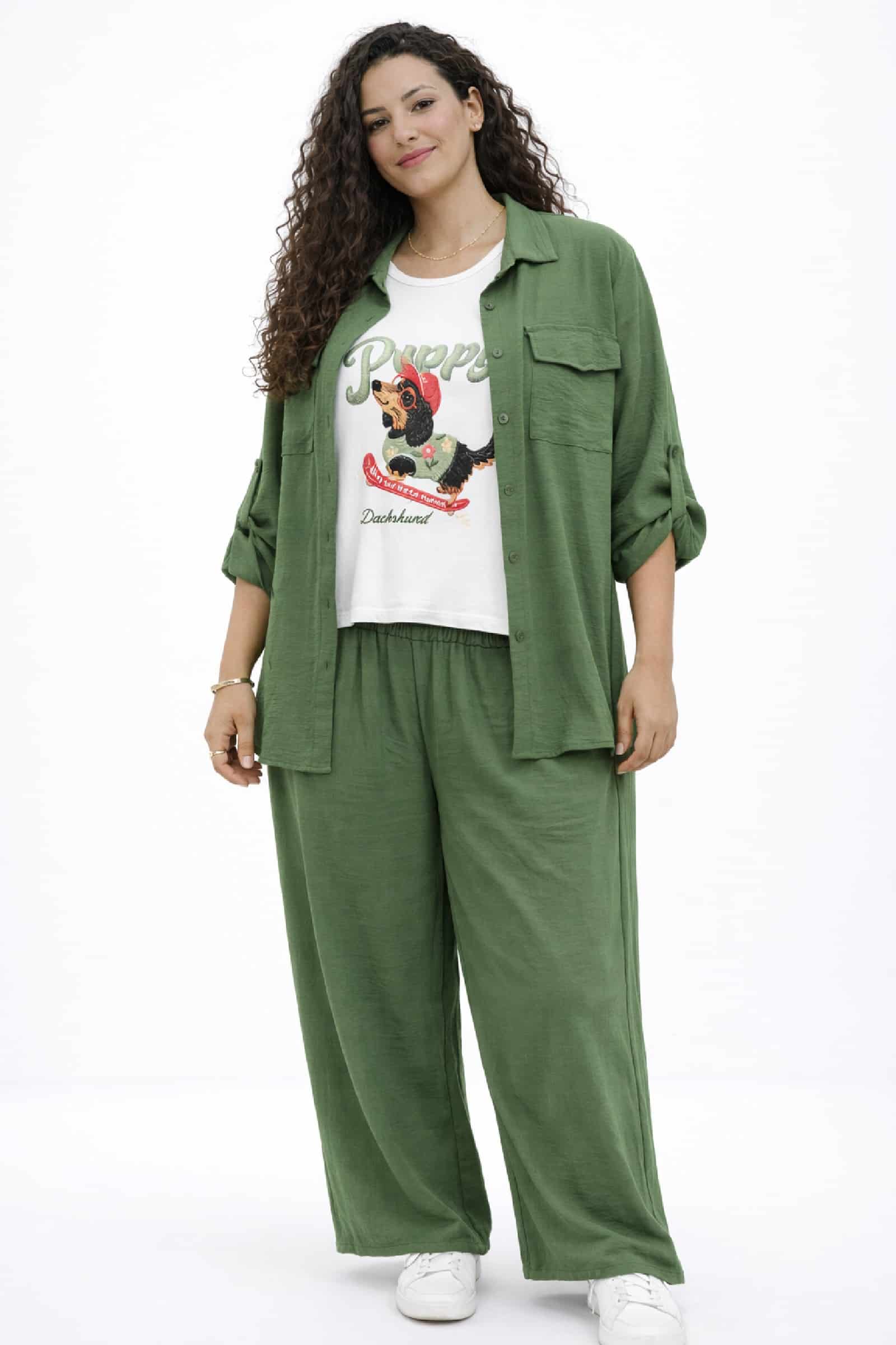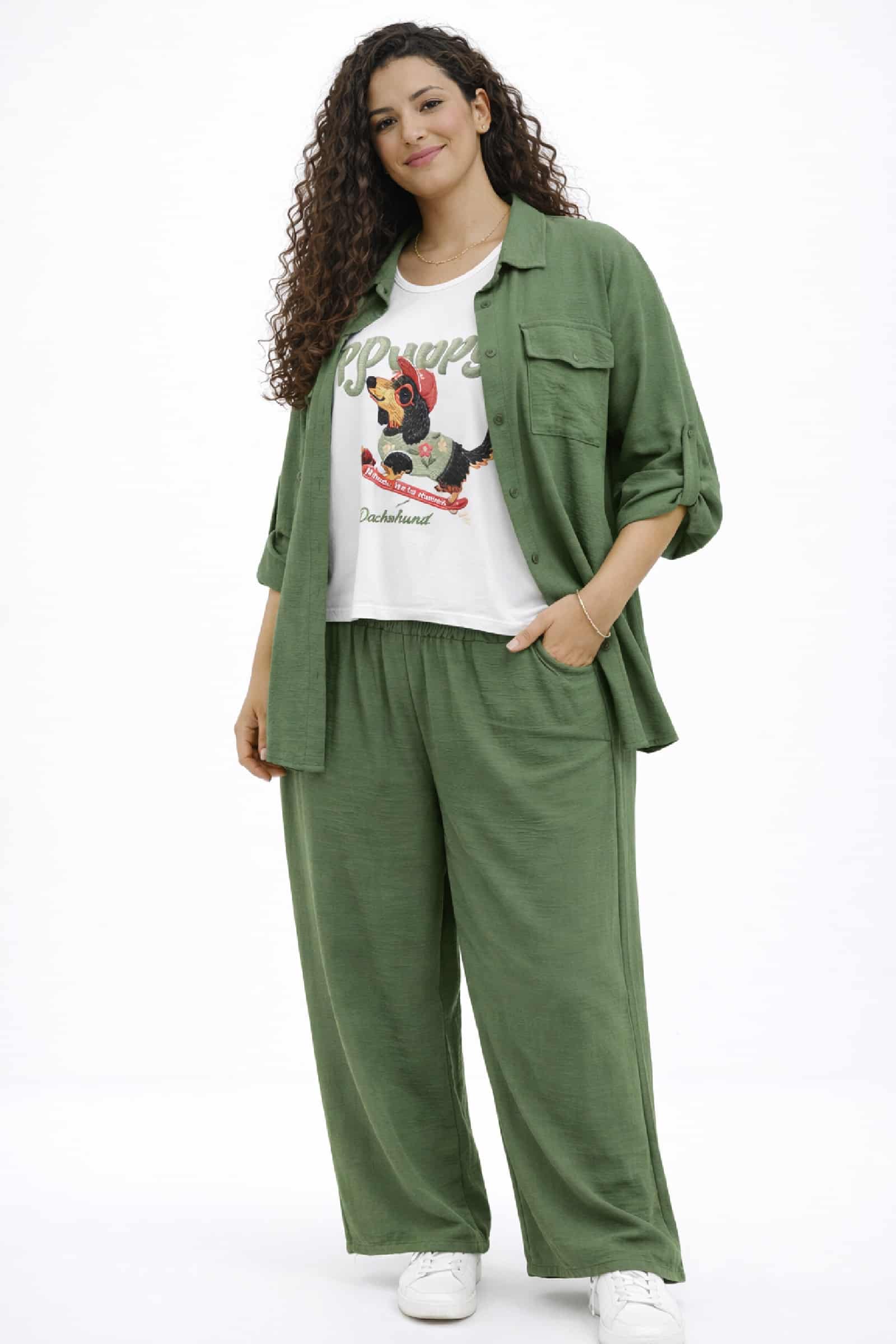 Conjunto Crep Bolsillos Kaki. Conjunto Tallas Grandes.