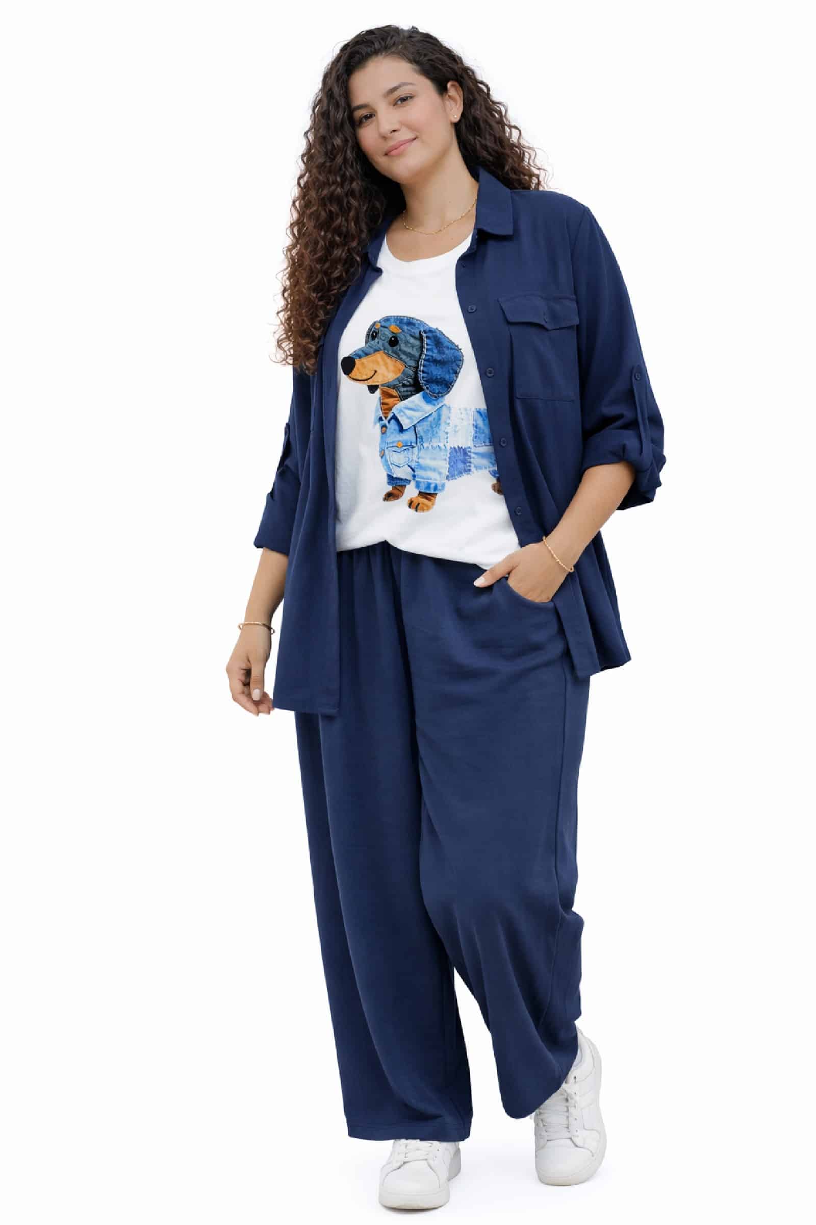 Conjunto Crep Bolsillos Marino. Conjunto Tallas Grandes.