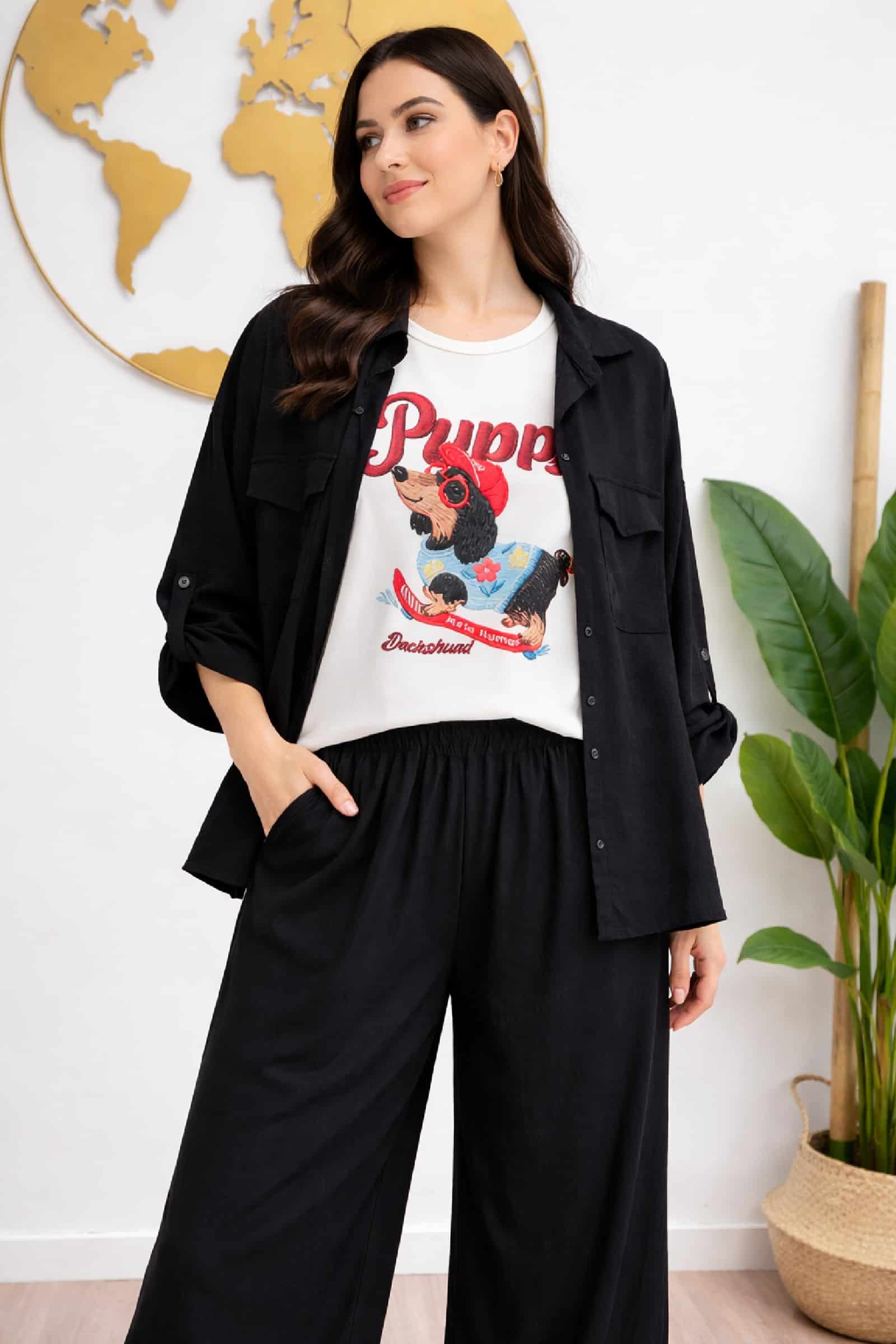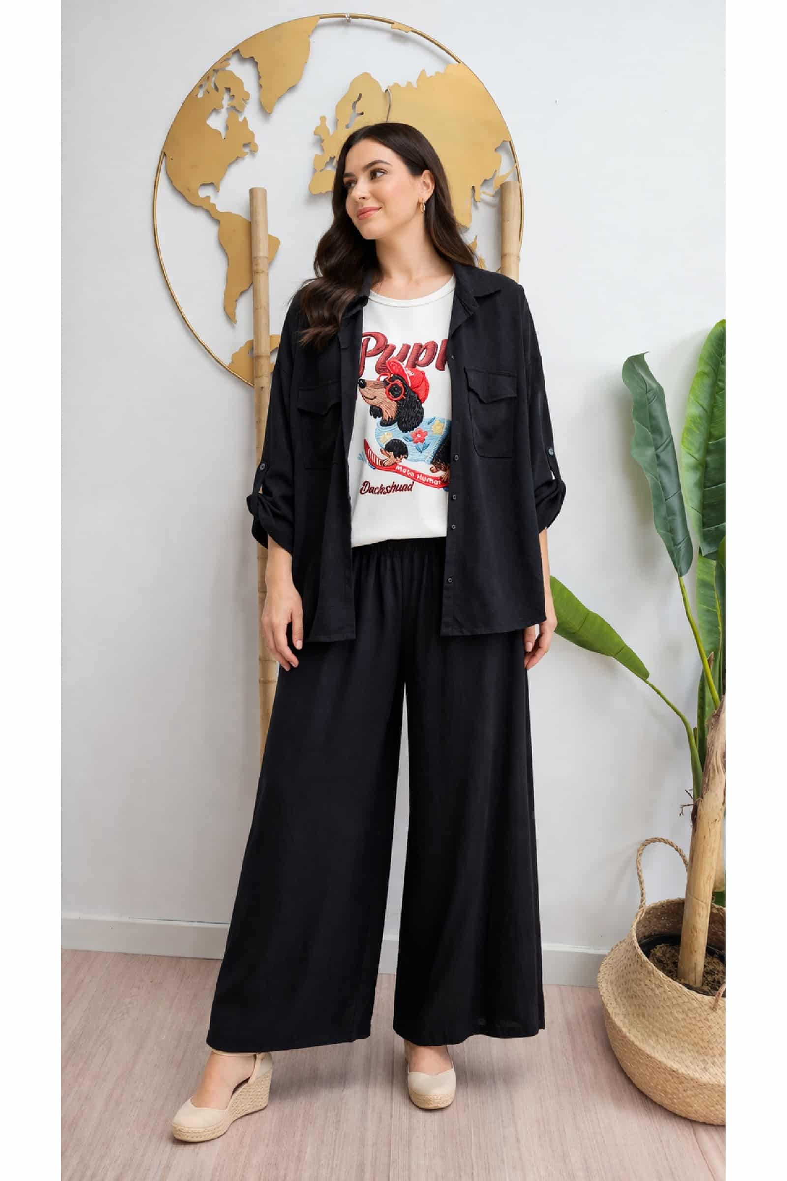 Conjunto Crep Bolsillos Negro. Conjunto Tallas Grandes.