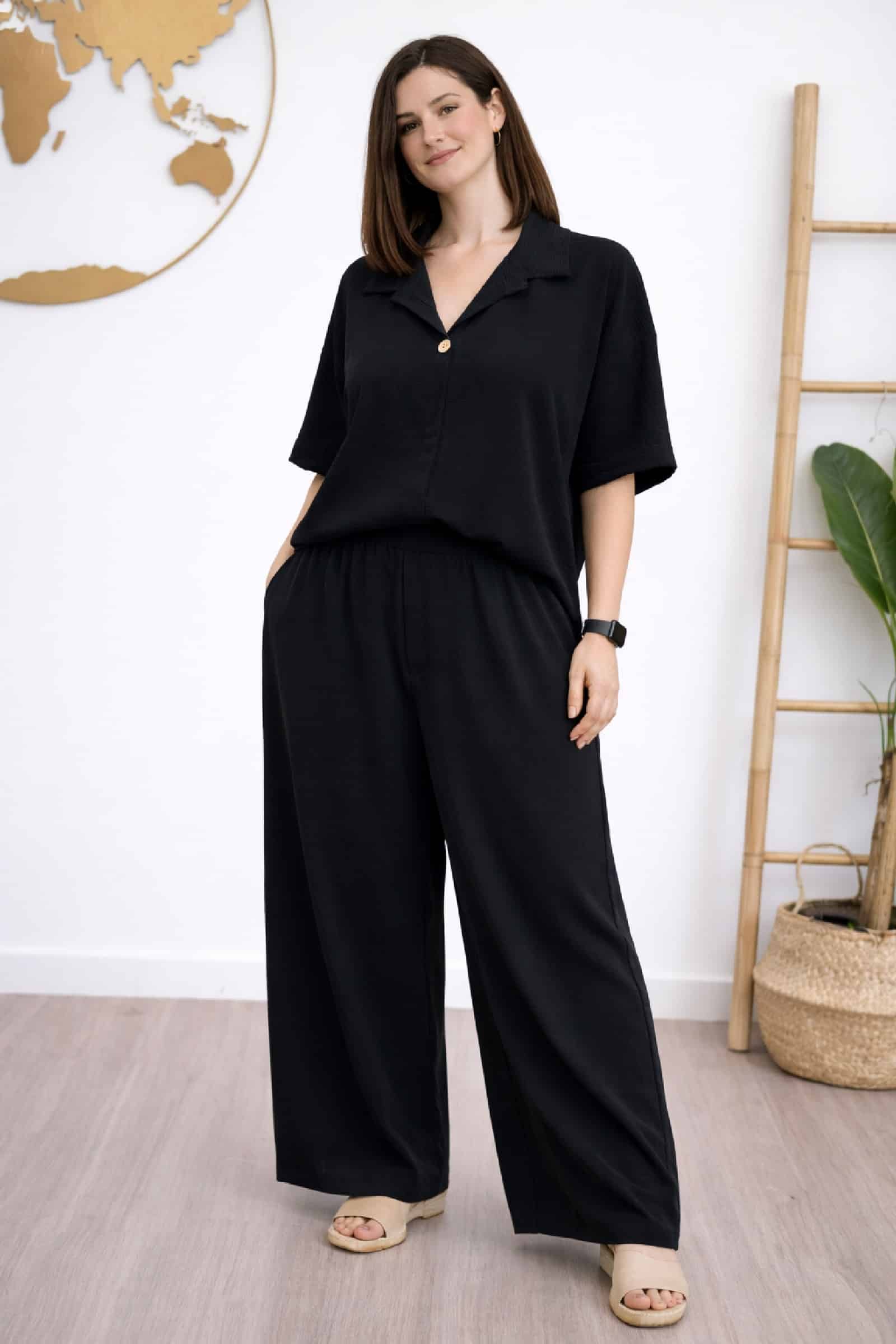 Conjunto Crep Boton Negro. Conjunto Tallas Grandes.