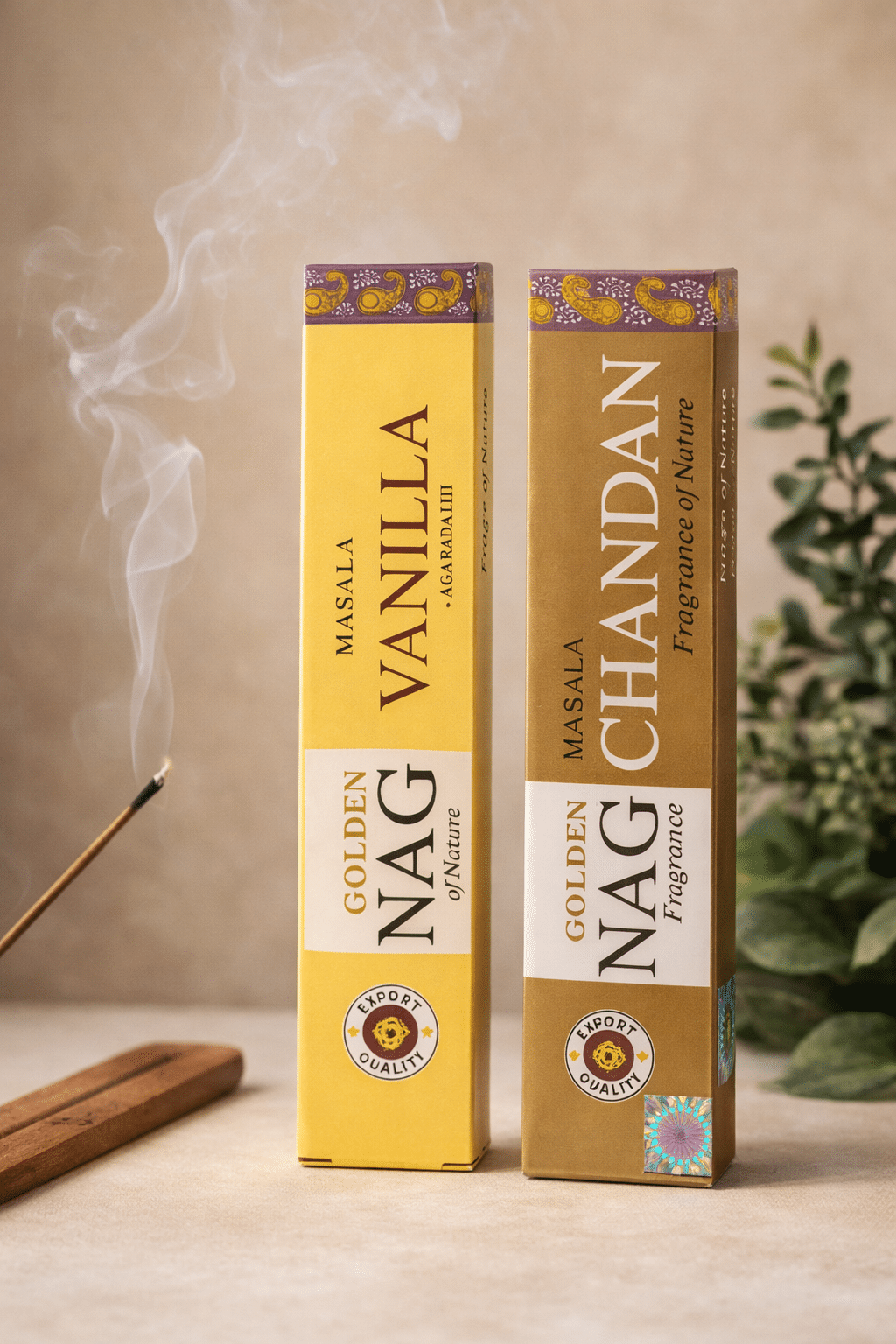 Ideales para momentos de relajación, meditación, limpieza energética o simplemente para llenar tu hogar de bienestar, los inciensos Golden Nag destacan por su fragancia duradera, elegante y equilibrada.