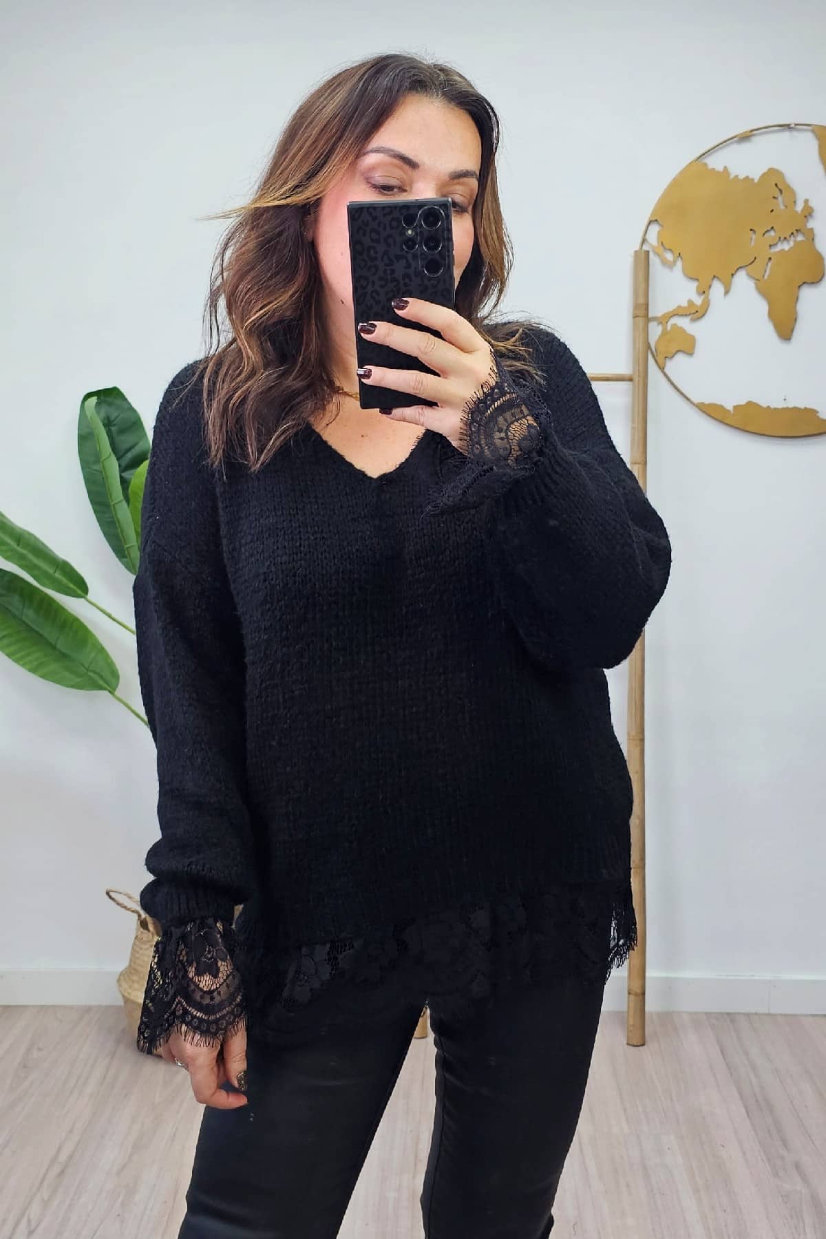 Jersey Boho Negro. Top Tallas Grandes.
