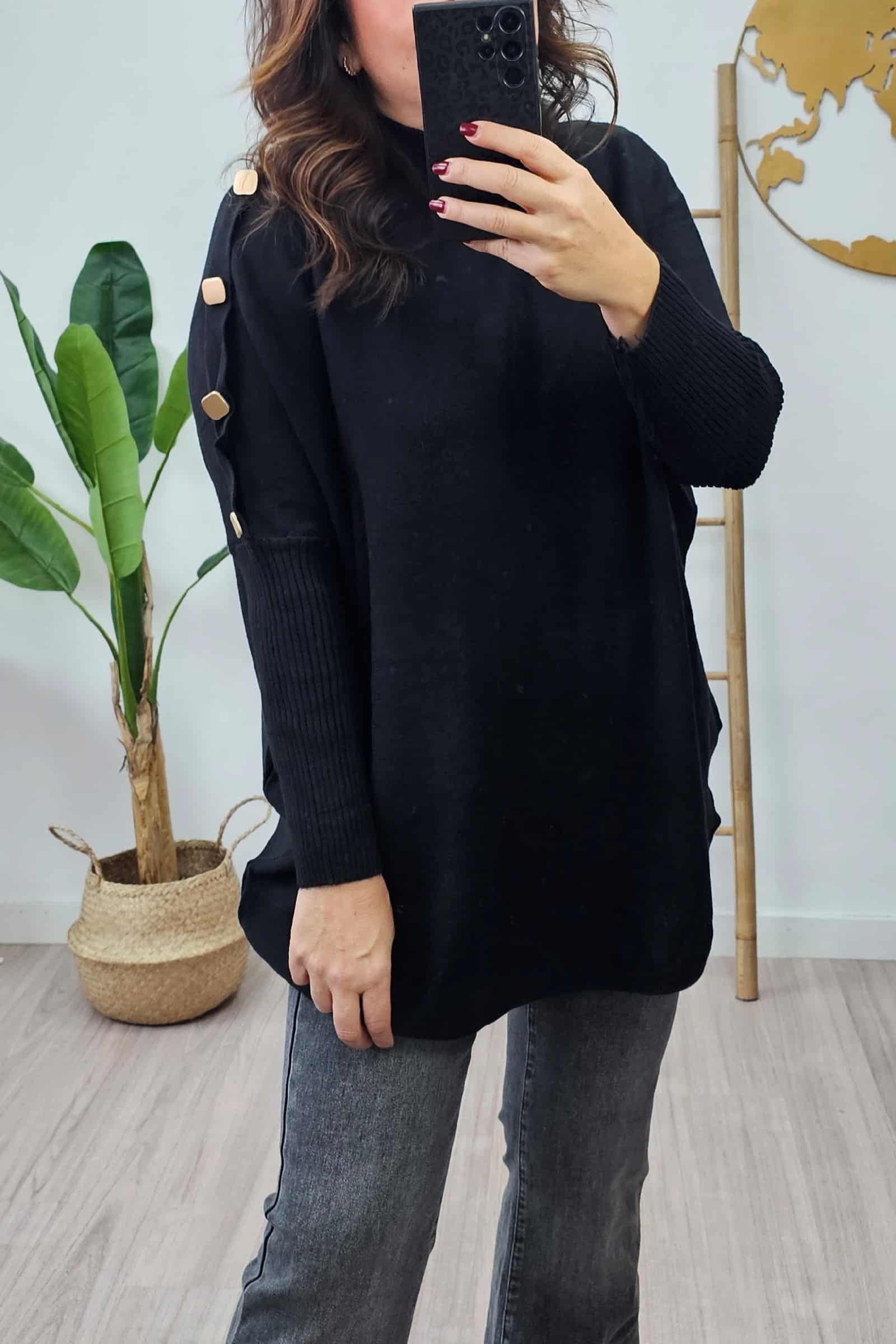 Jersey Botones Negro. Jerseys Tallas Grandes.