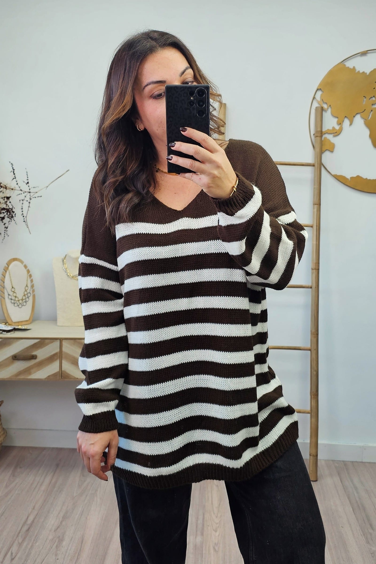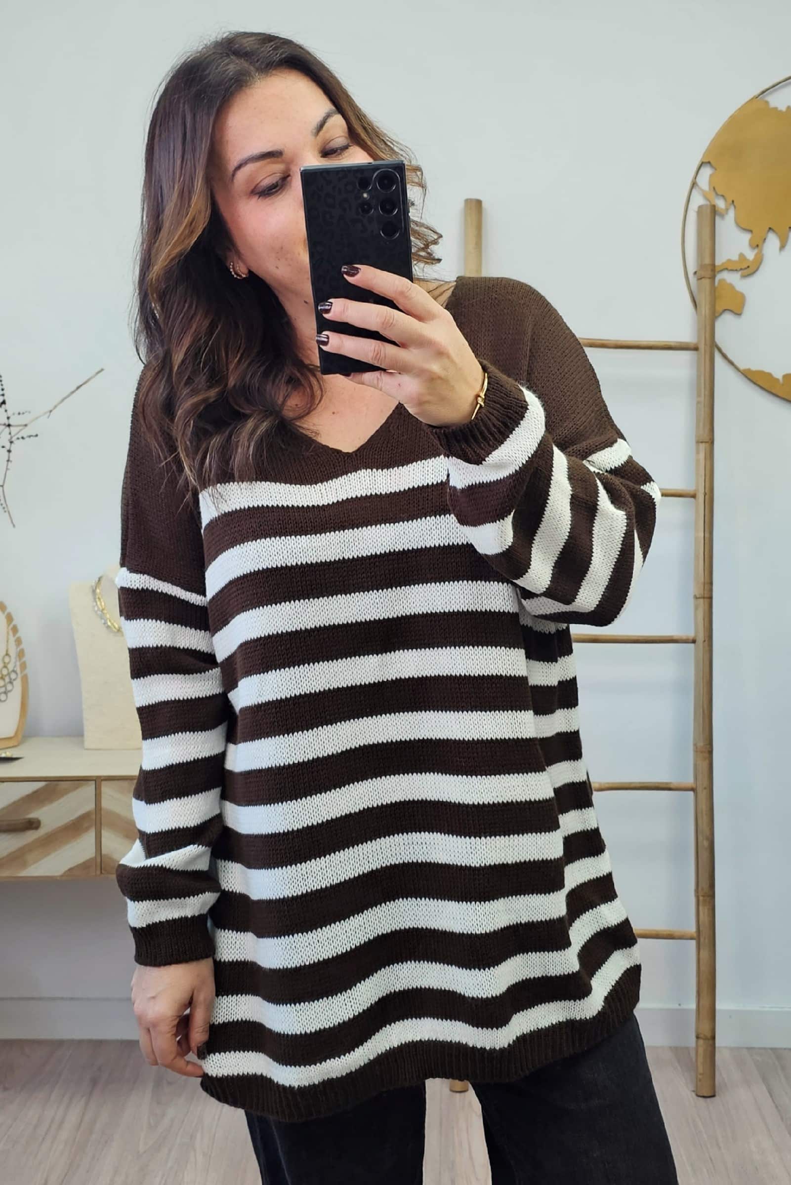 Jersey Oversize Rayas Marrón. Jerseis Tallas Grandes.