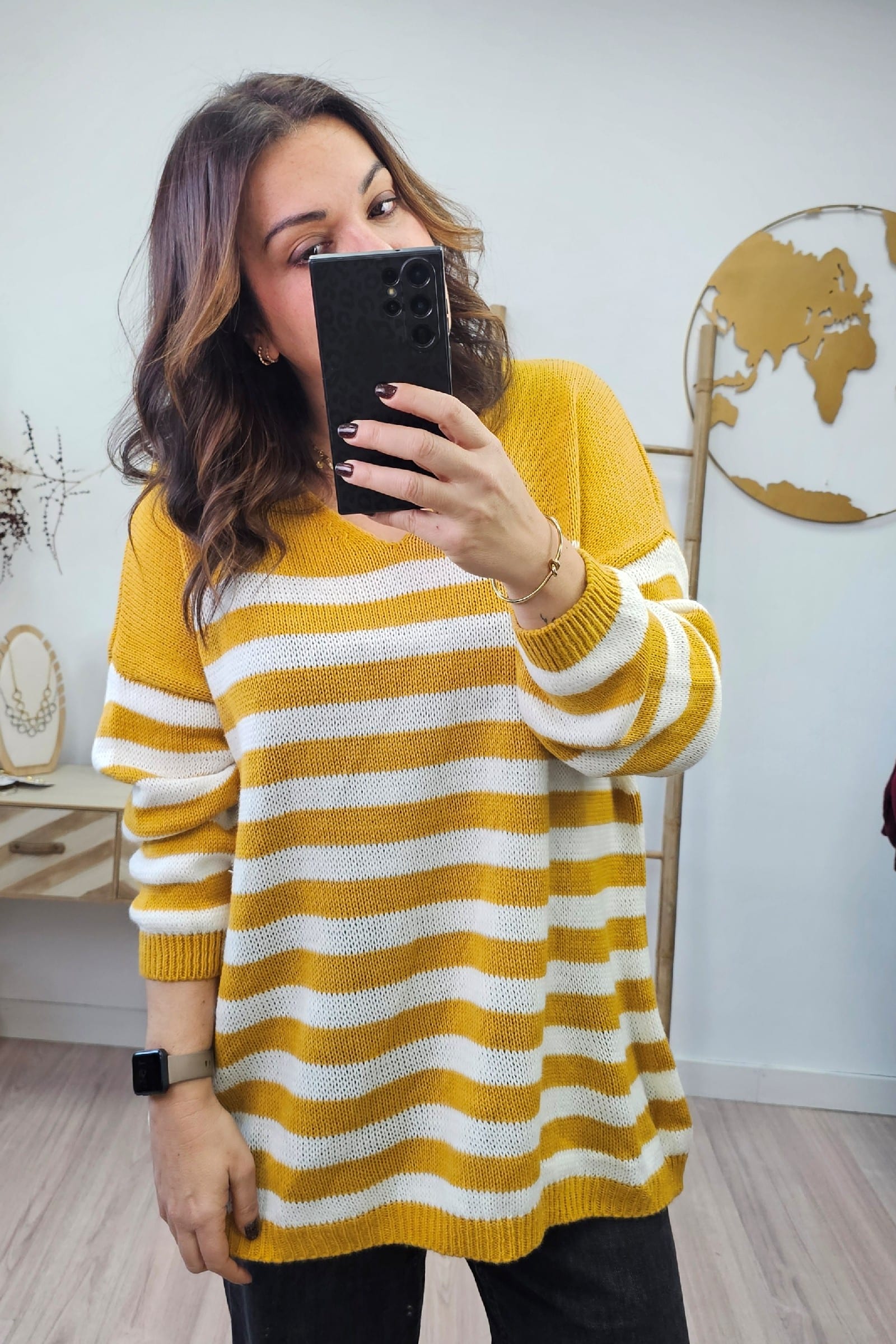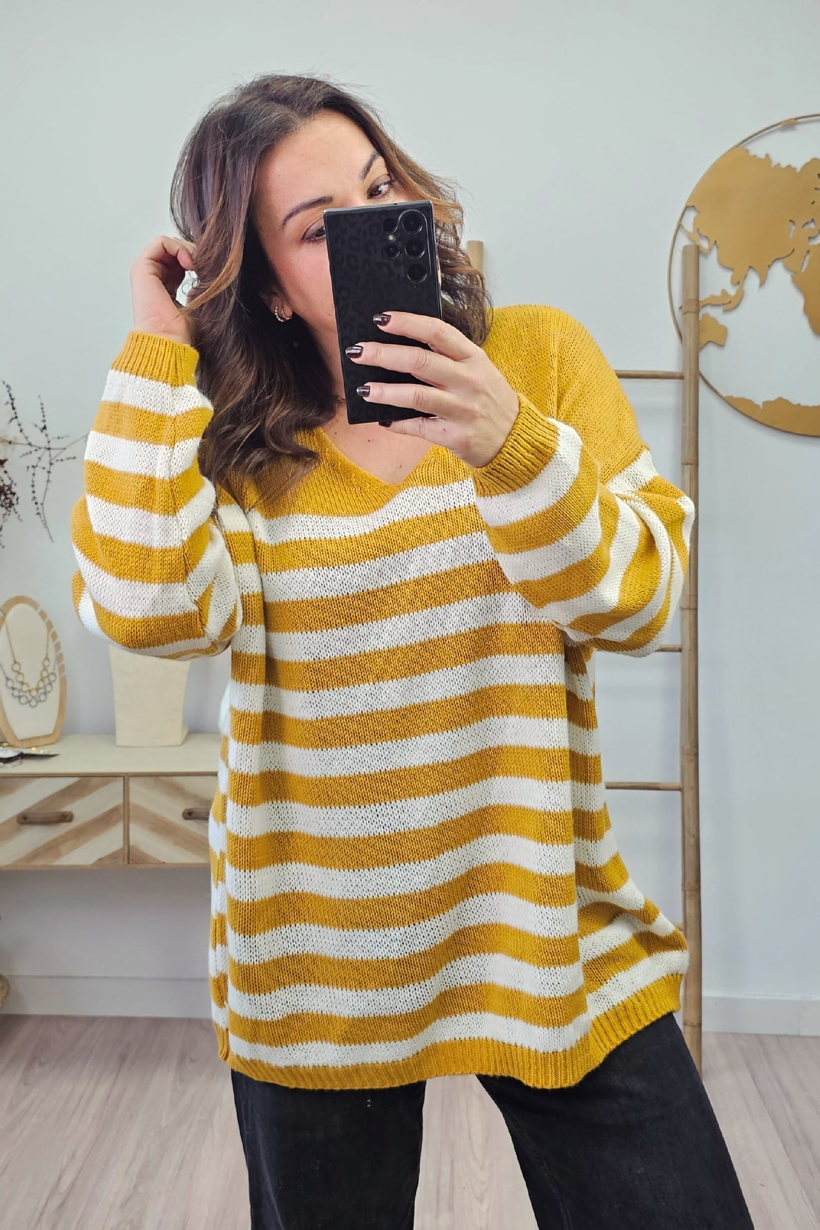Jersey Oversize Rayas Mostaza. Jerseis Tallas Grandes.