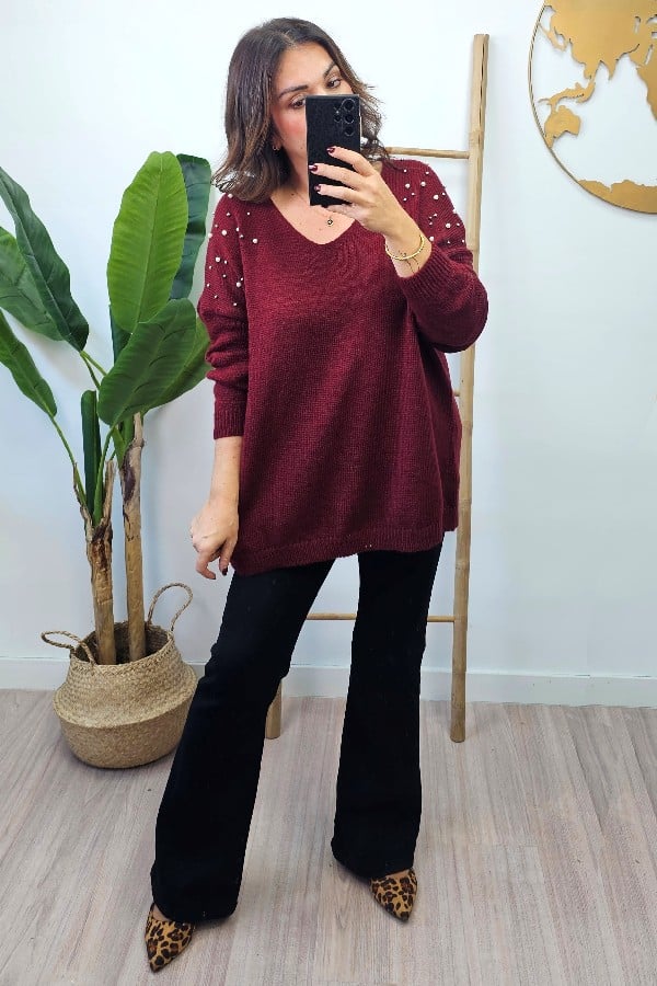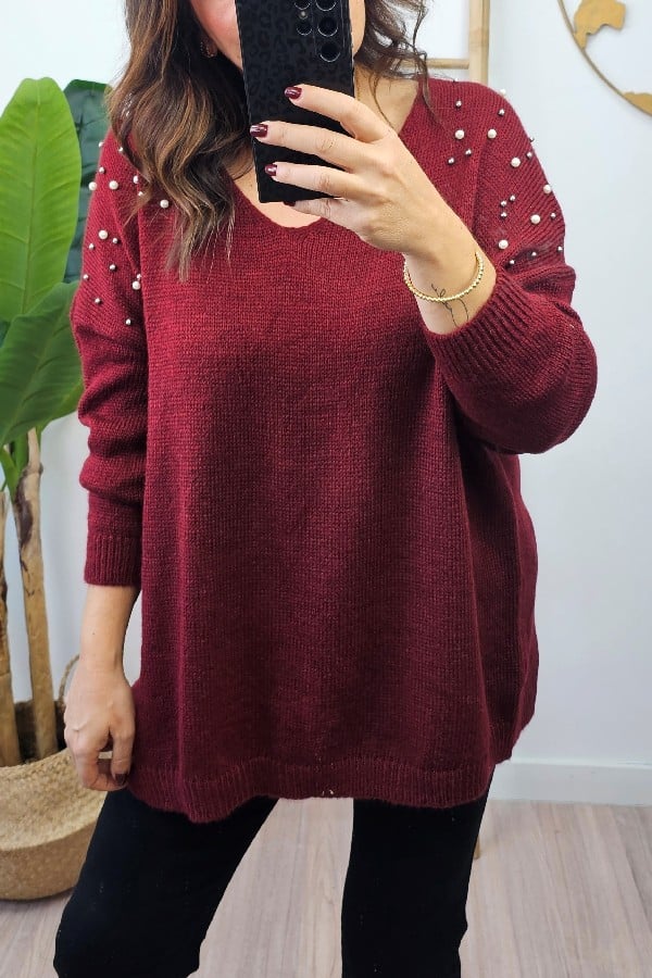 Jersey Pearl Burdeos. Top Tallas Grandes.