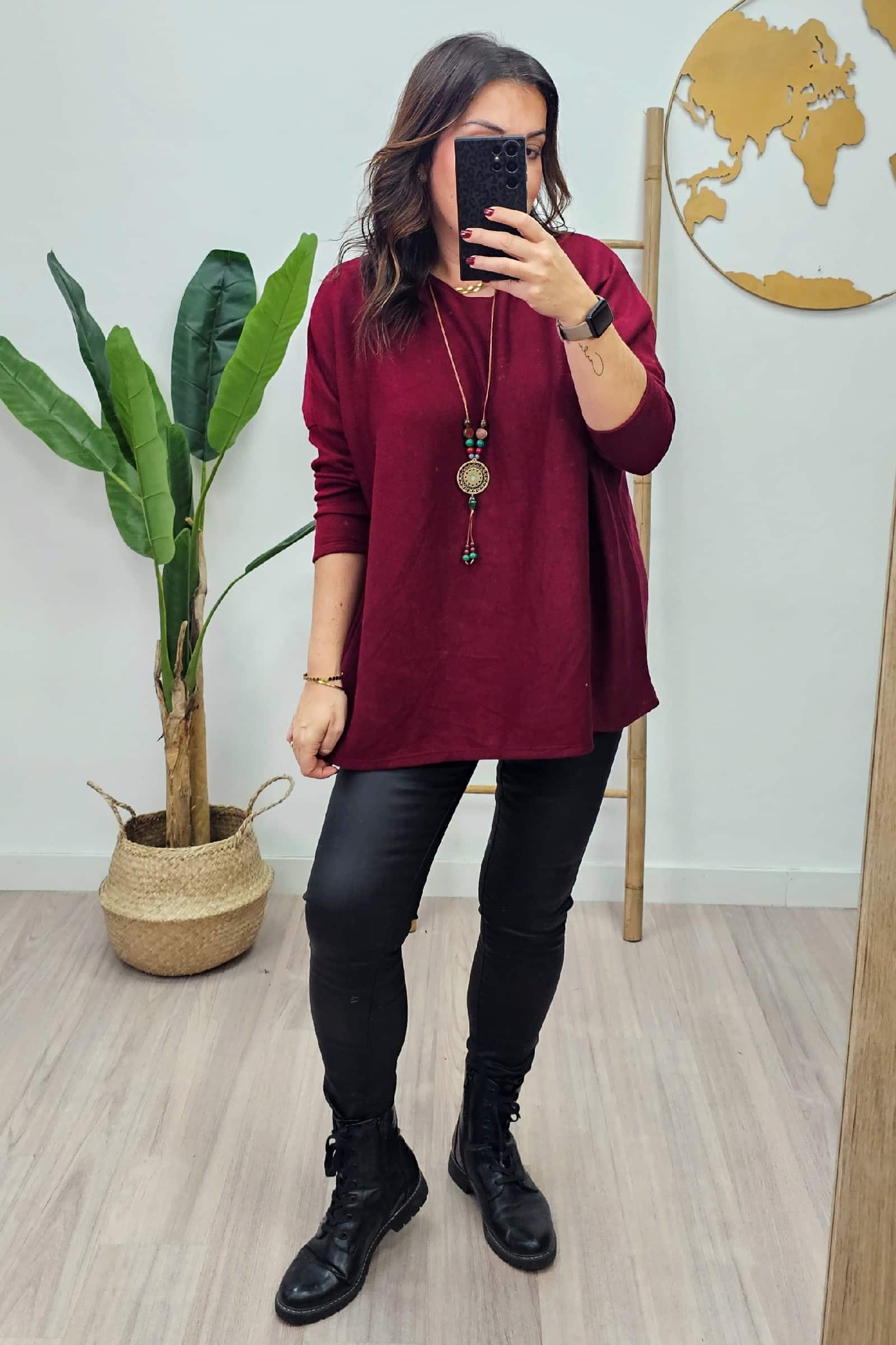 Jersey Twin Burdeos. Top Tallas Grandes.