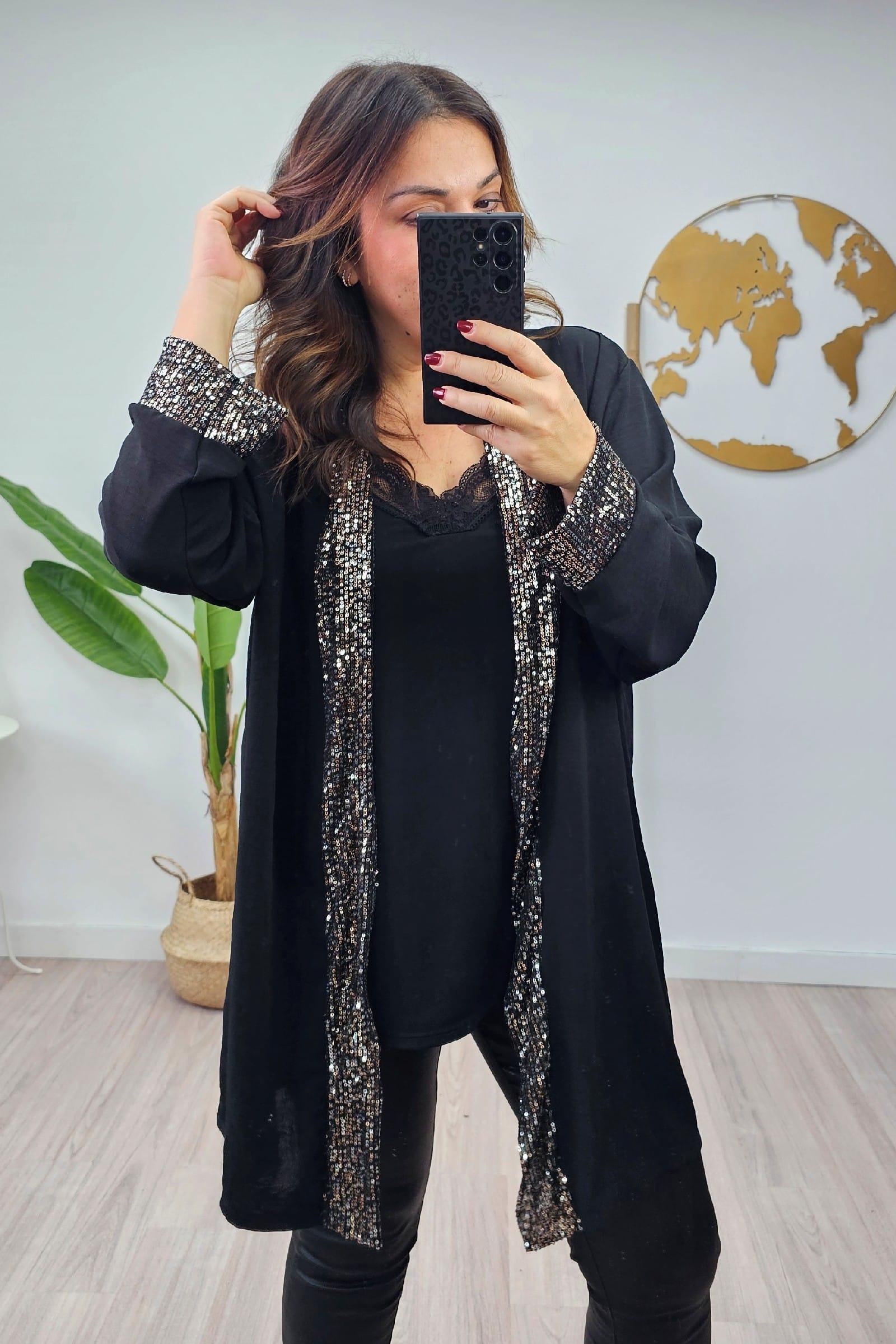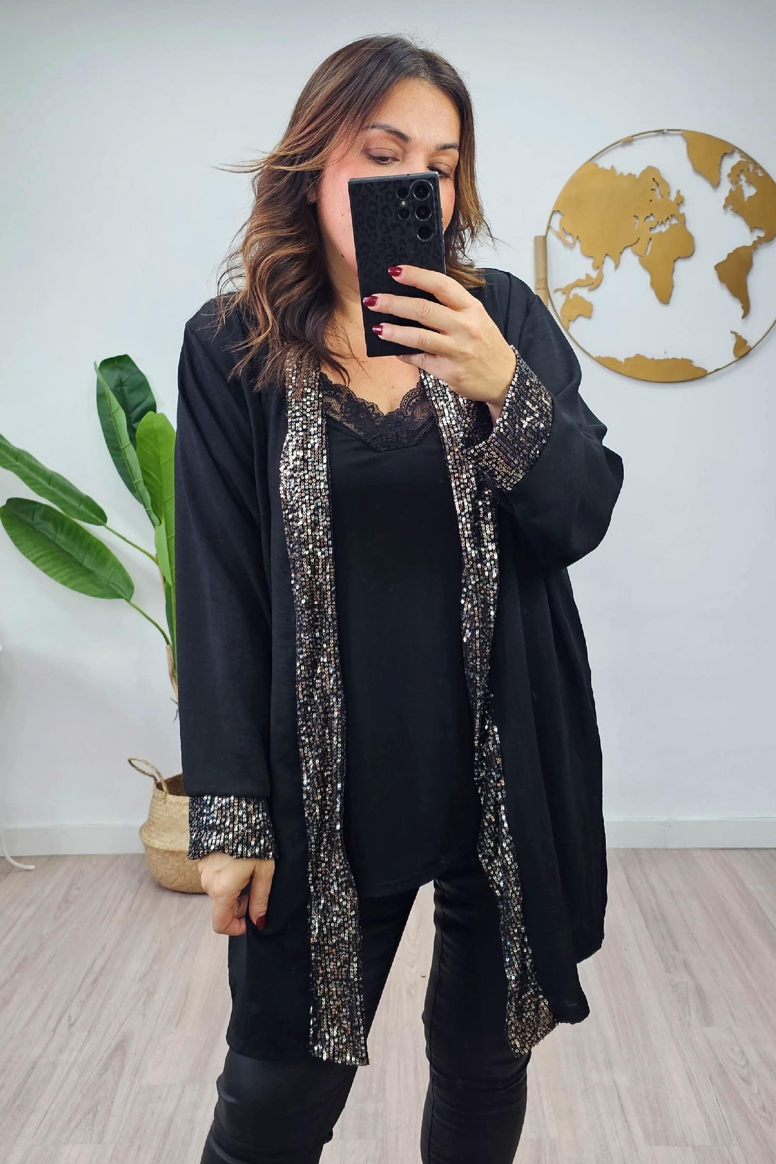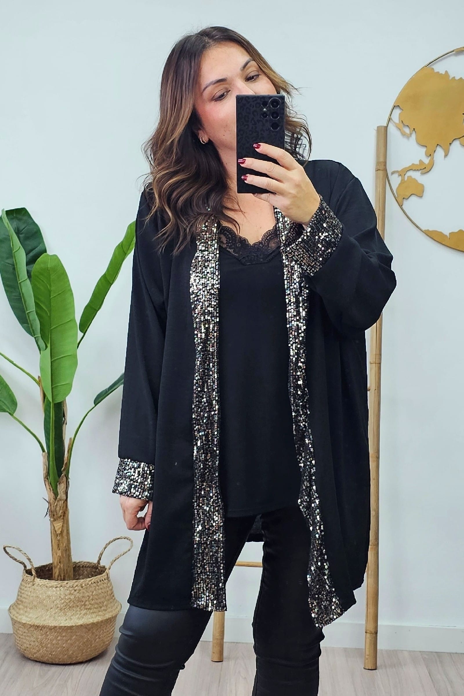 Kimono Largo Lentejuelas Color. Chaquetas tallas grandes