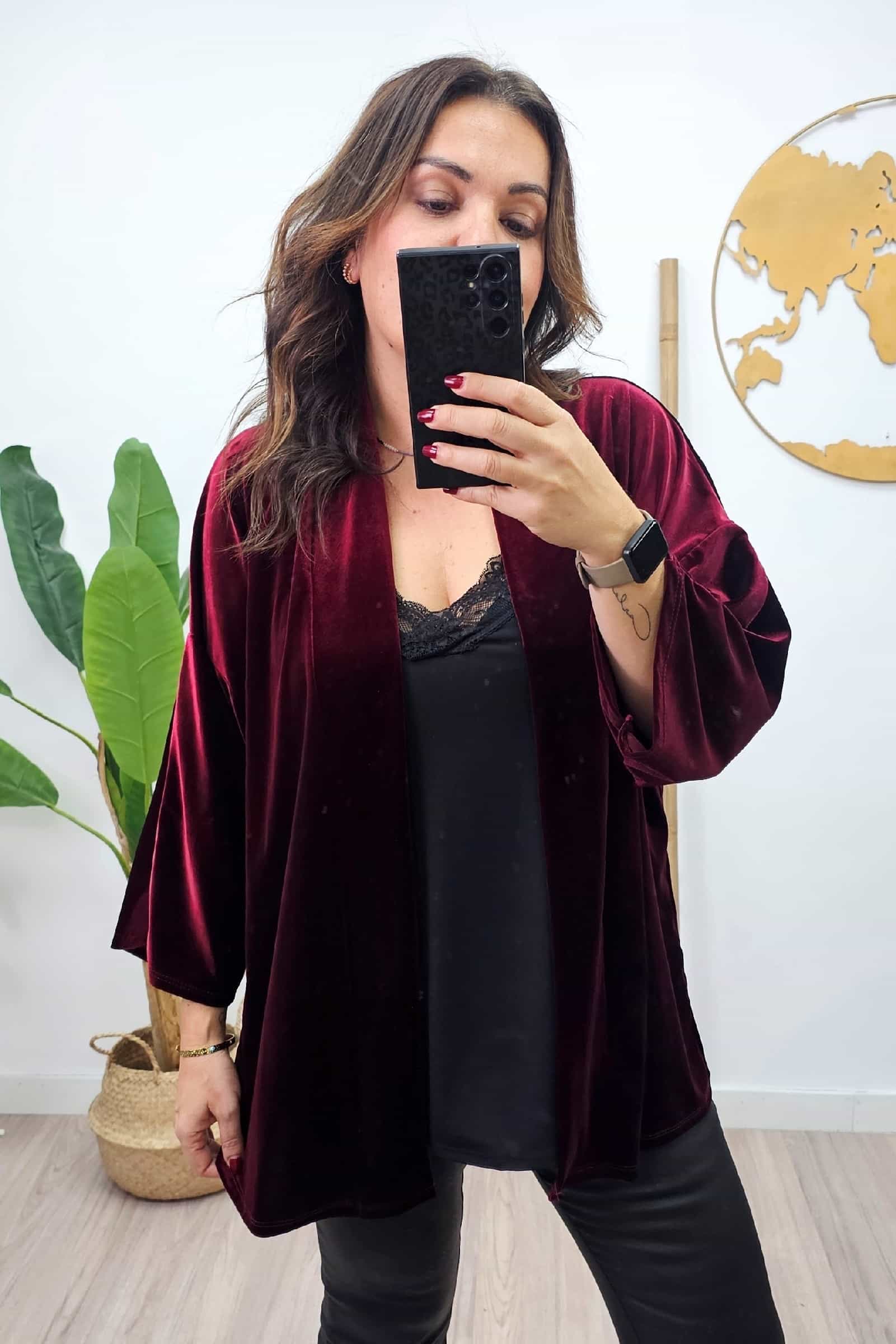 Kimono Terciopelo Burdeos. Chaquetas tallas grandes