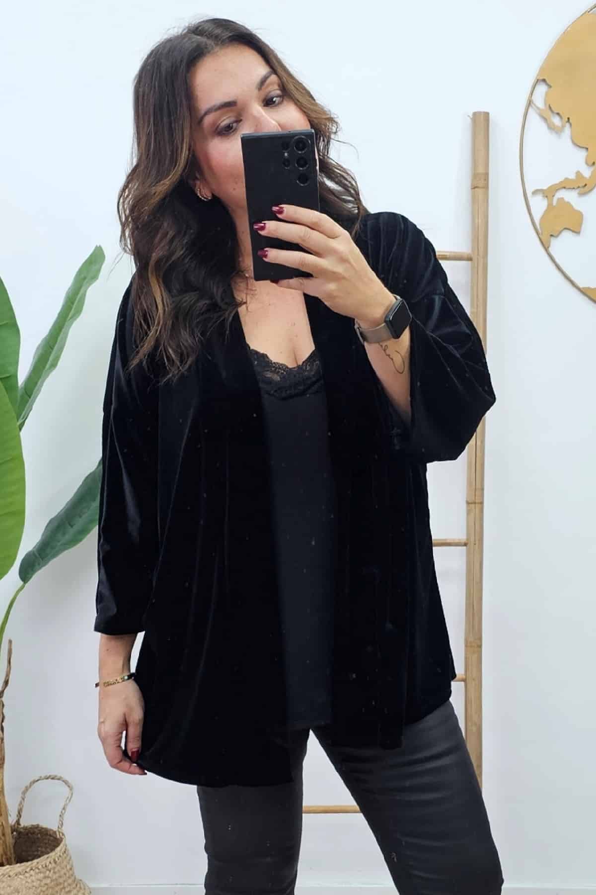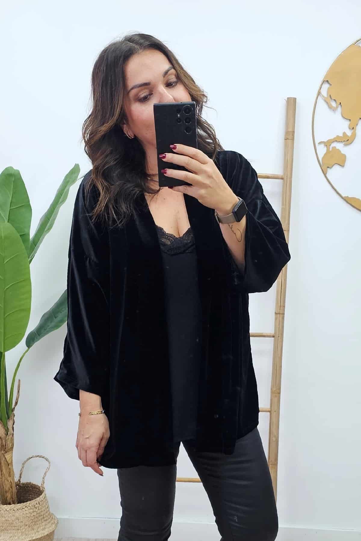 Kimono Tercipelo Negro. Chaquetas tallas grandes