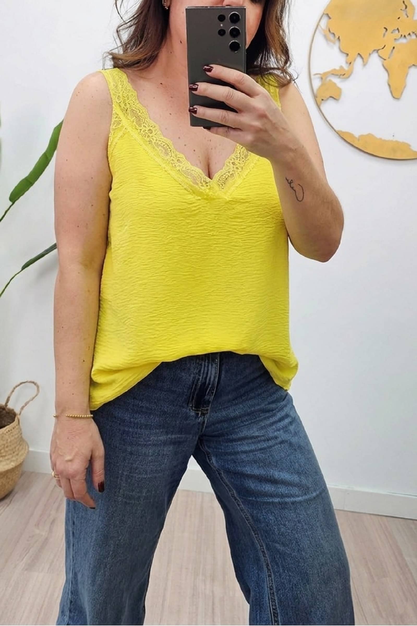 Lencera Cloe Amarilla. Blusas tallas grandes.