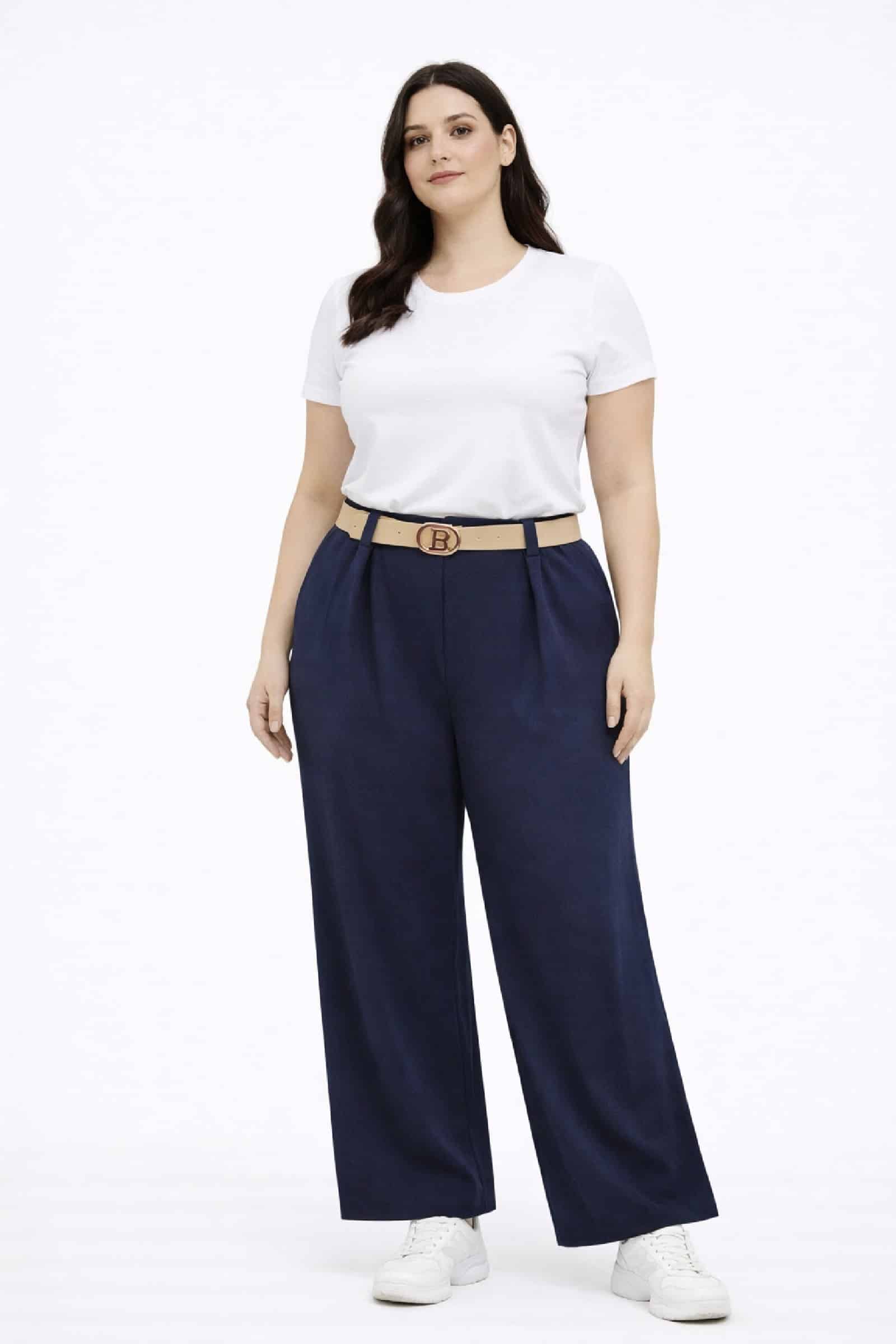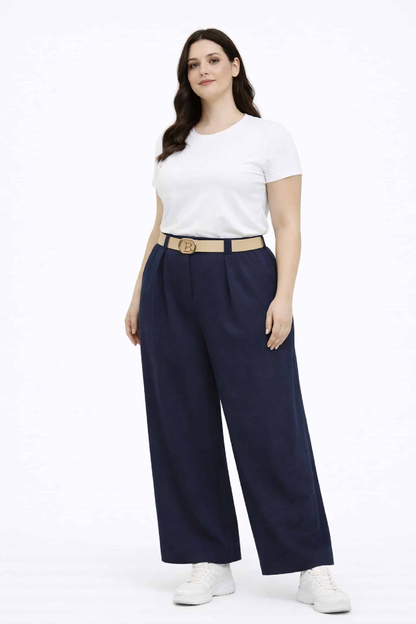 Pantalón Ancho Cinturón marino. Pantalones tallas grandes.