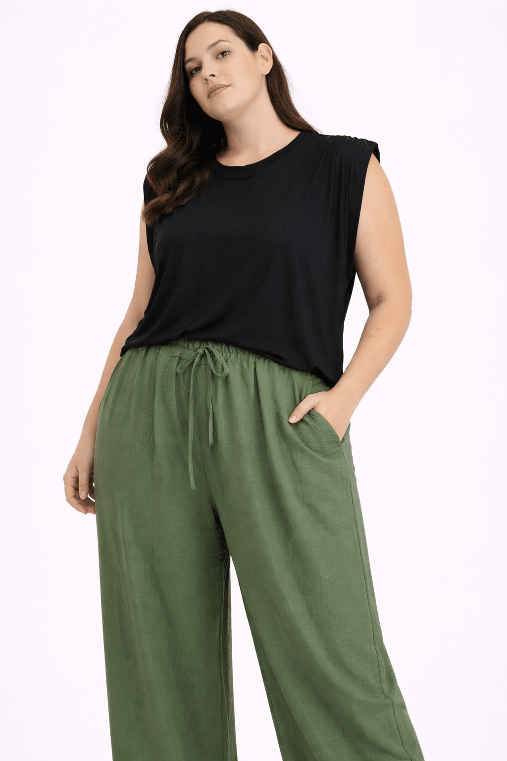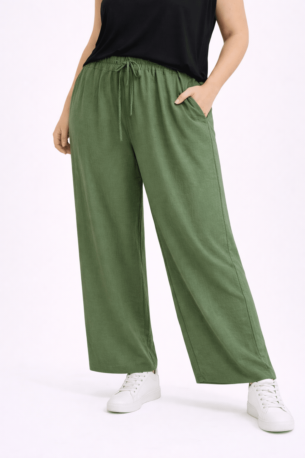 Pantalón Crep Cordon Kaki. Pantalones tallas Grandes.