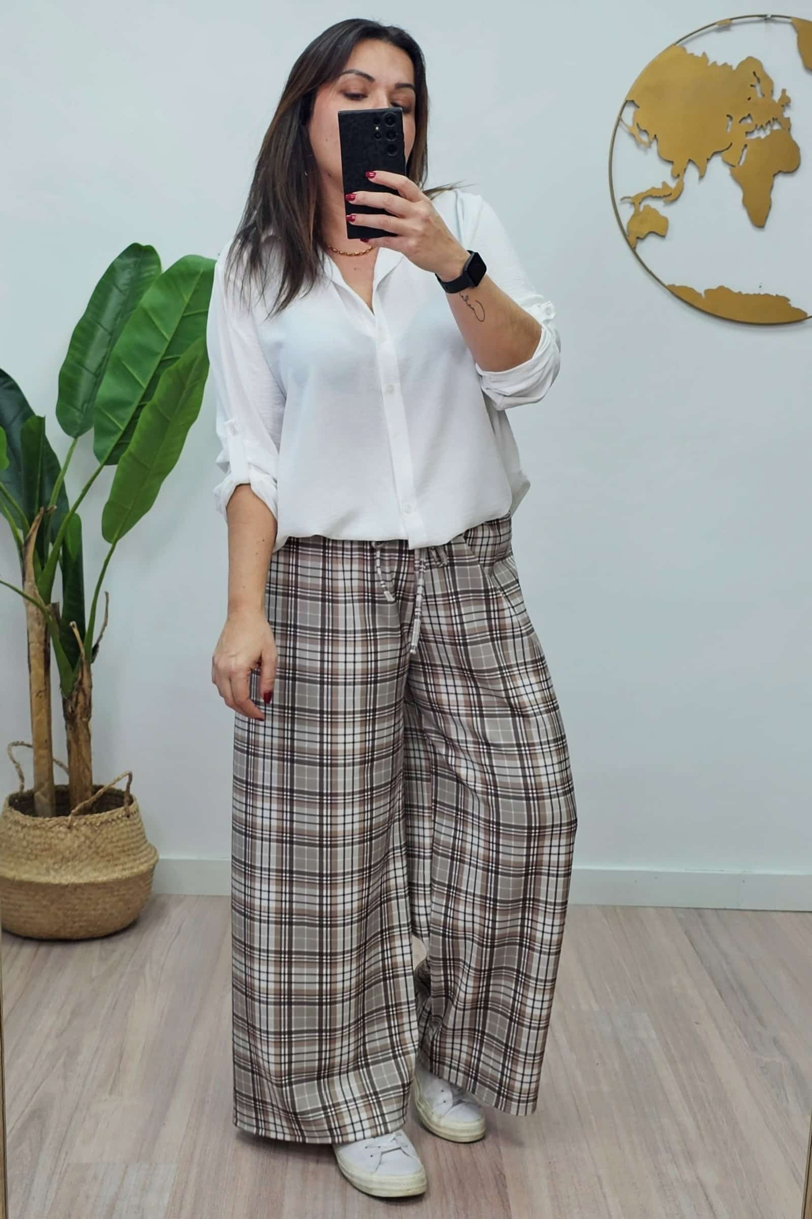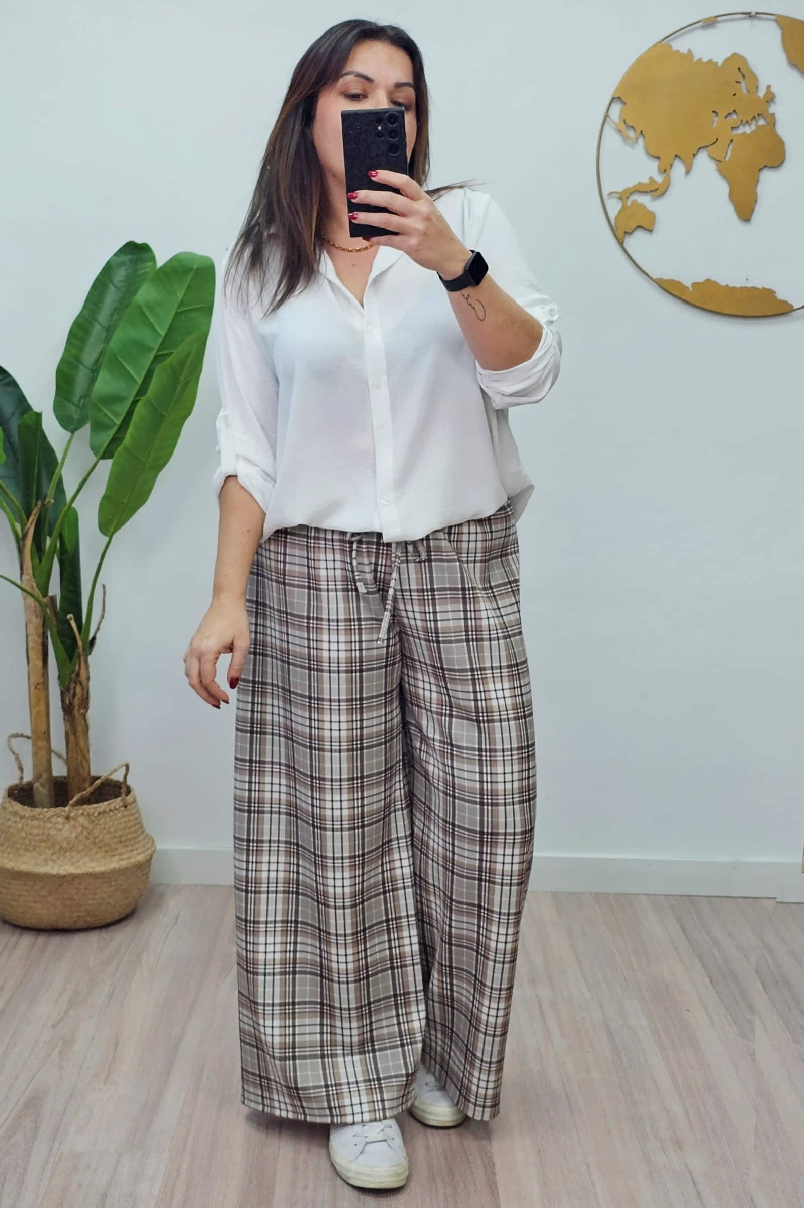 Pantalón Cuadros Marrón. Pantalones tallas grandes.