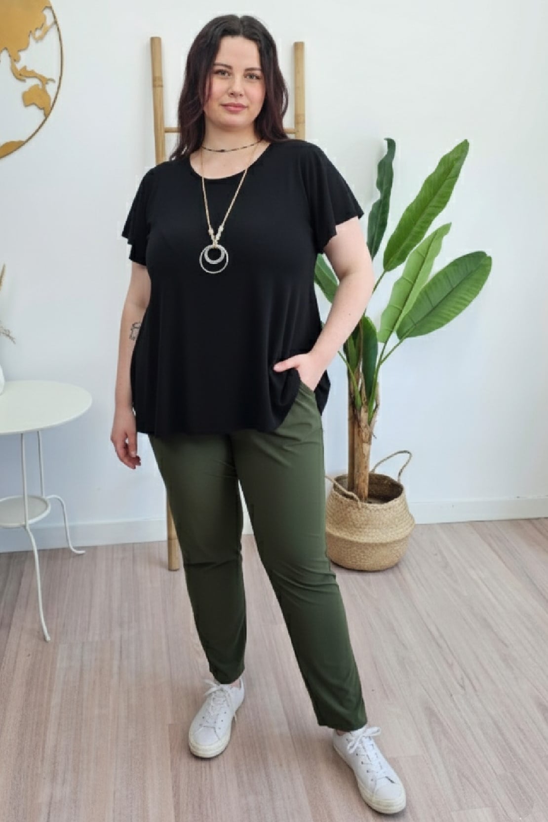 Pantalon Gatsby de punto con caída y bolsillo