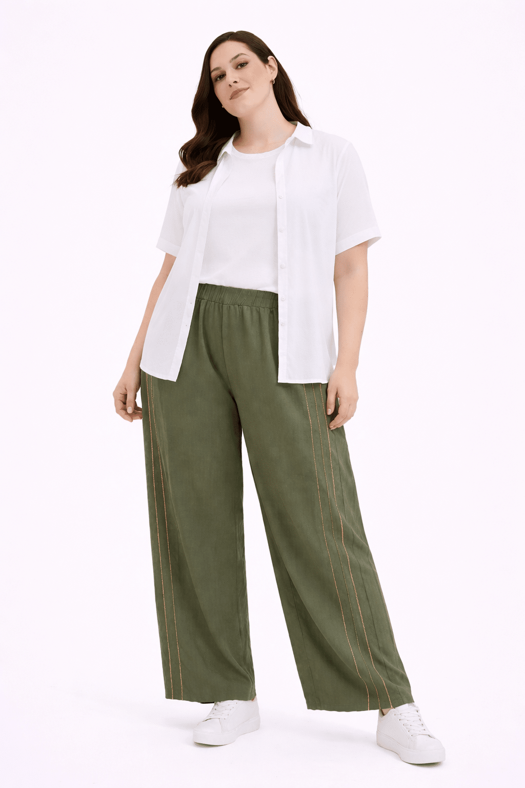 Pantalón de viscosa con detalle lateral. Sin bolsillos.