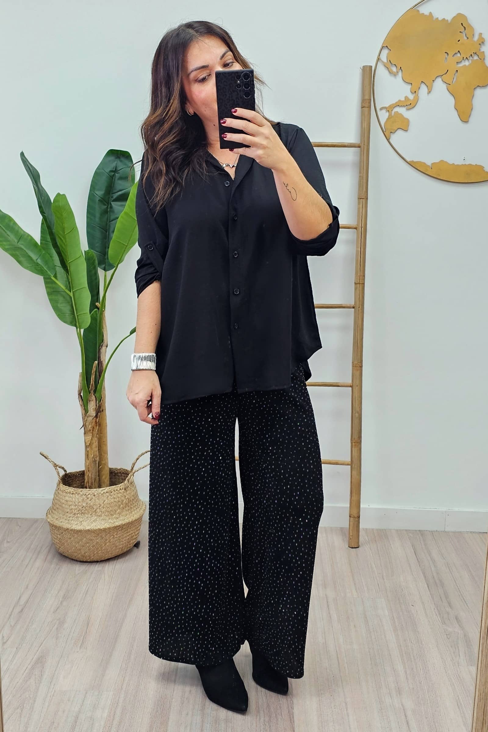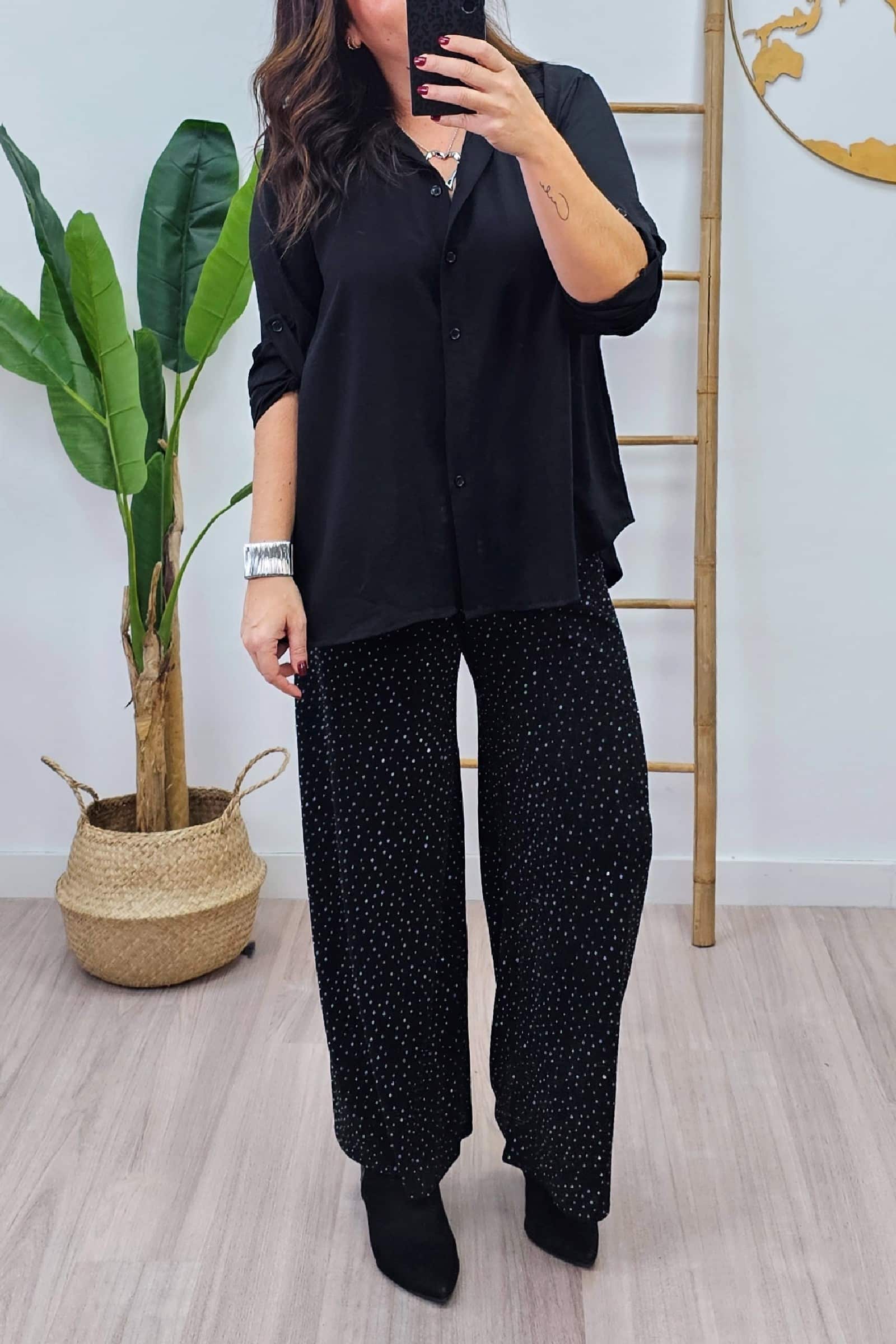 Pantalón de lurex ancho con cintura elastica.