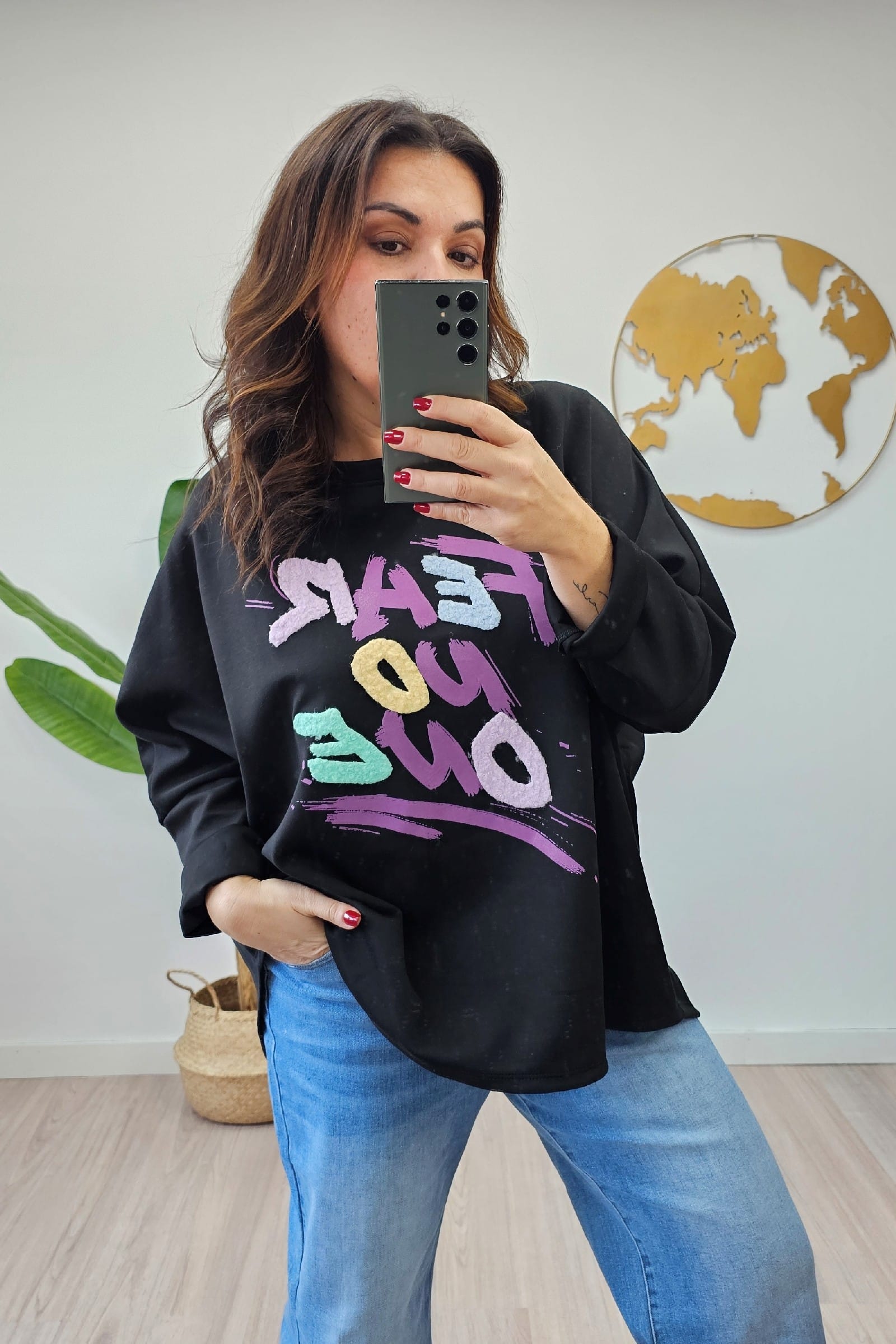 Sudadera Fear Negra. Sudaderas Tallas Grandes.