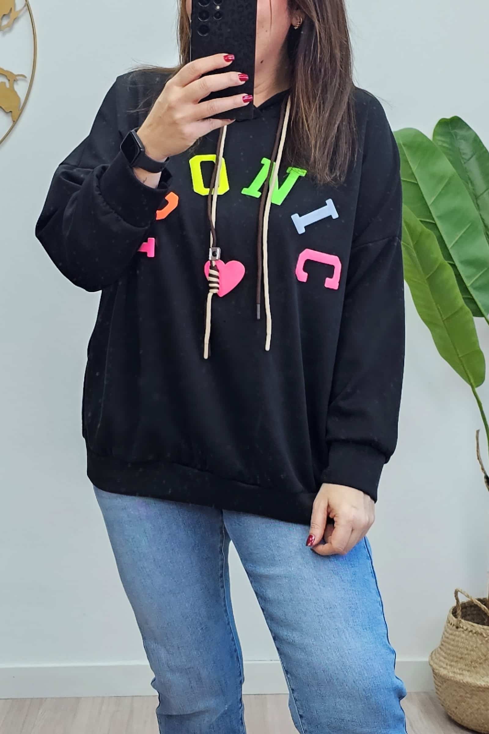 Sudadera Iconic Negra. Sudaderas Tallas Grandes.