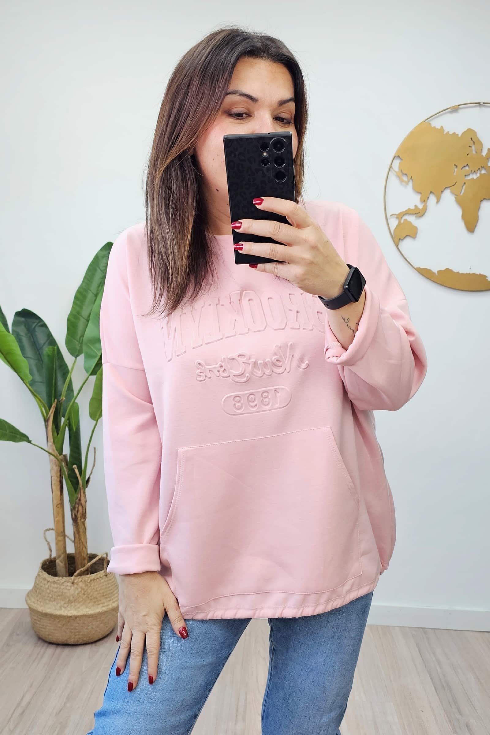 Sudadera Oxford Rosa. Sudaderas Tallas Grandes.