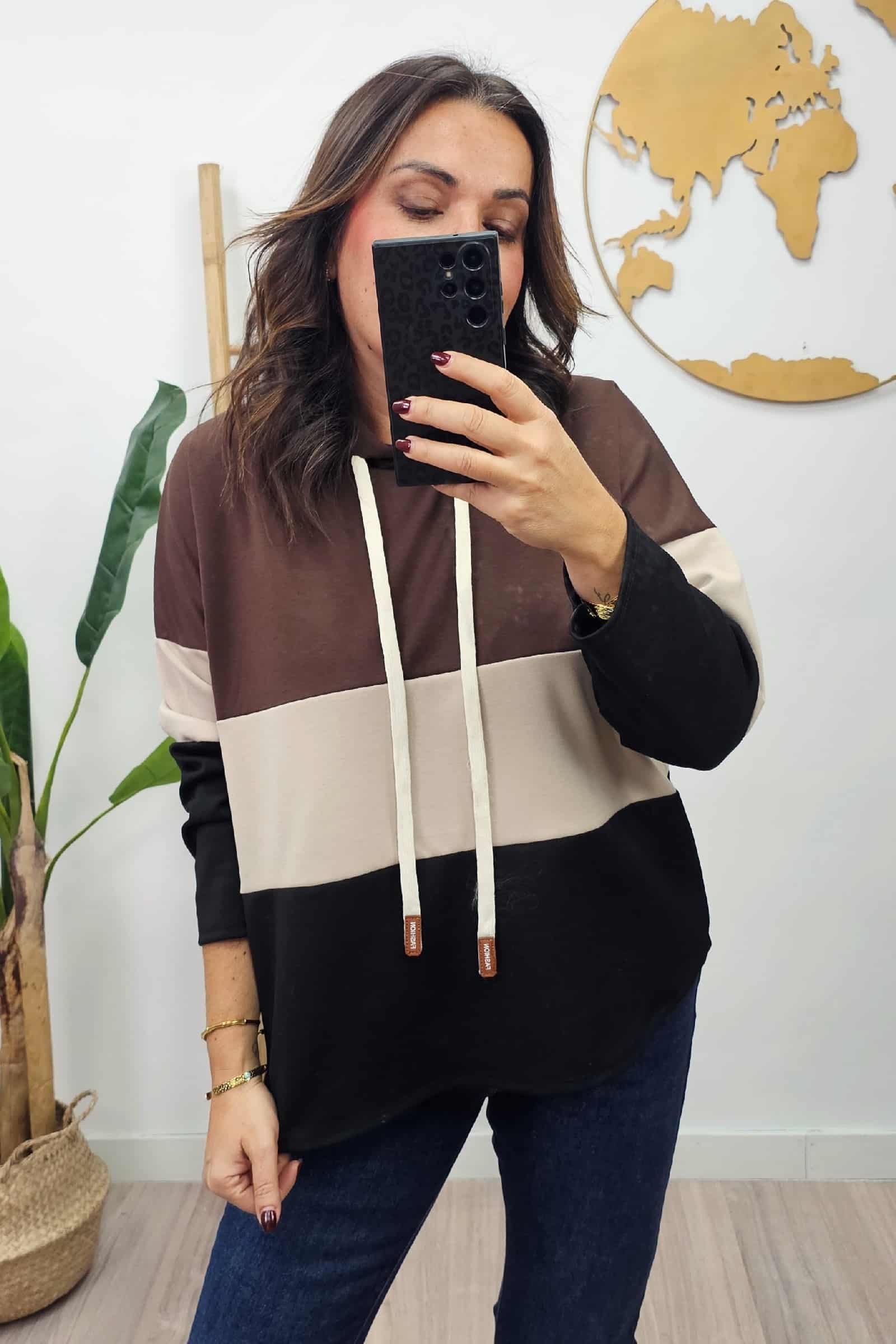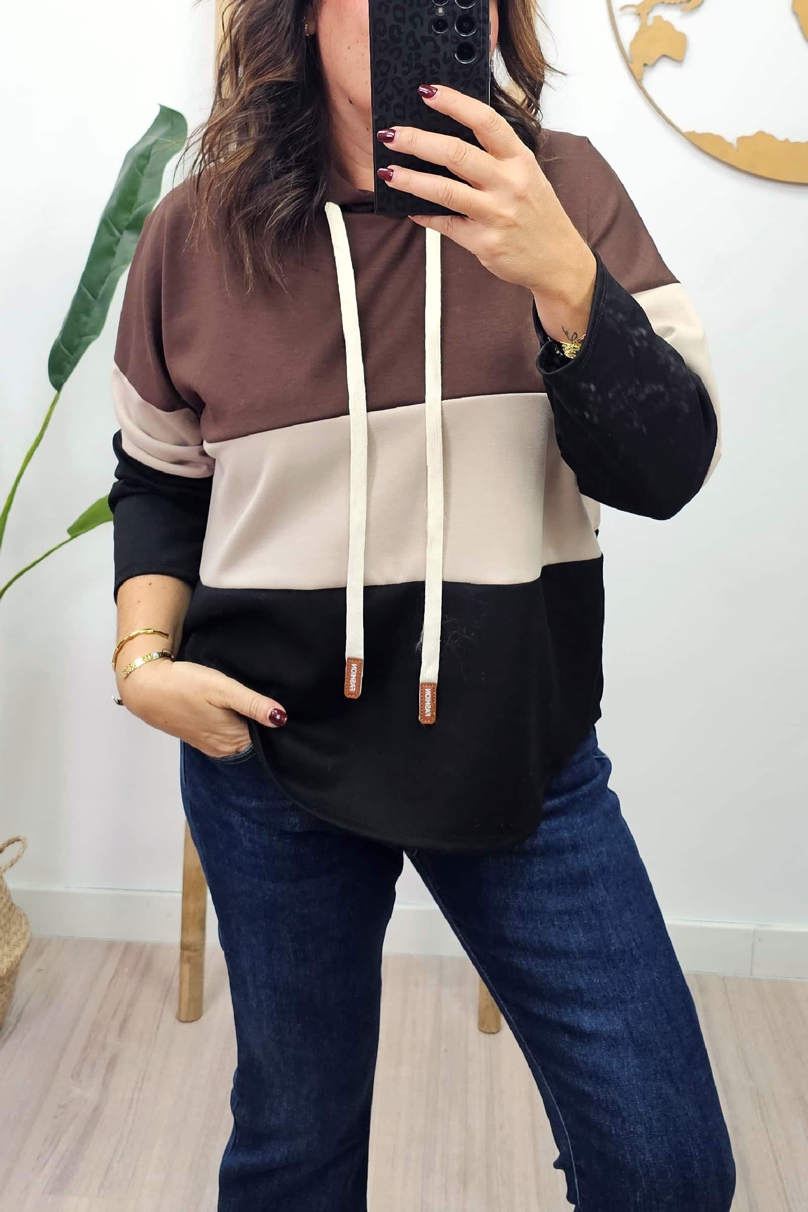 Sudadera Tricolor Marron. Sudaderas Tallas Grandes.