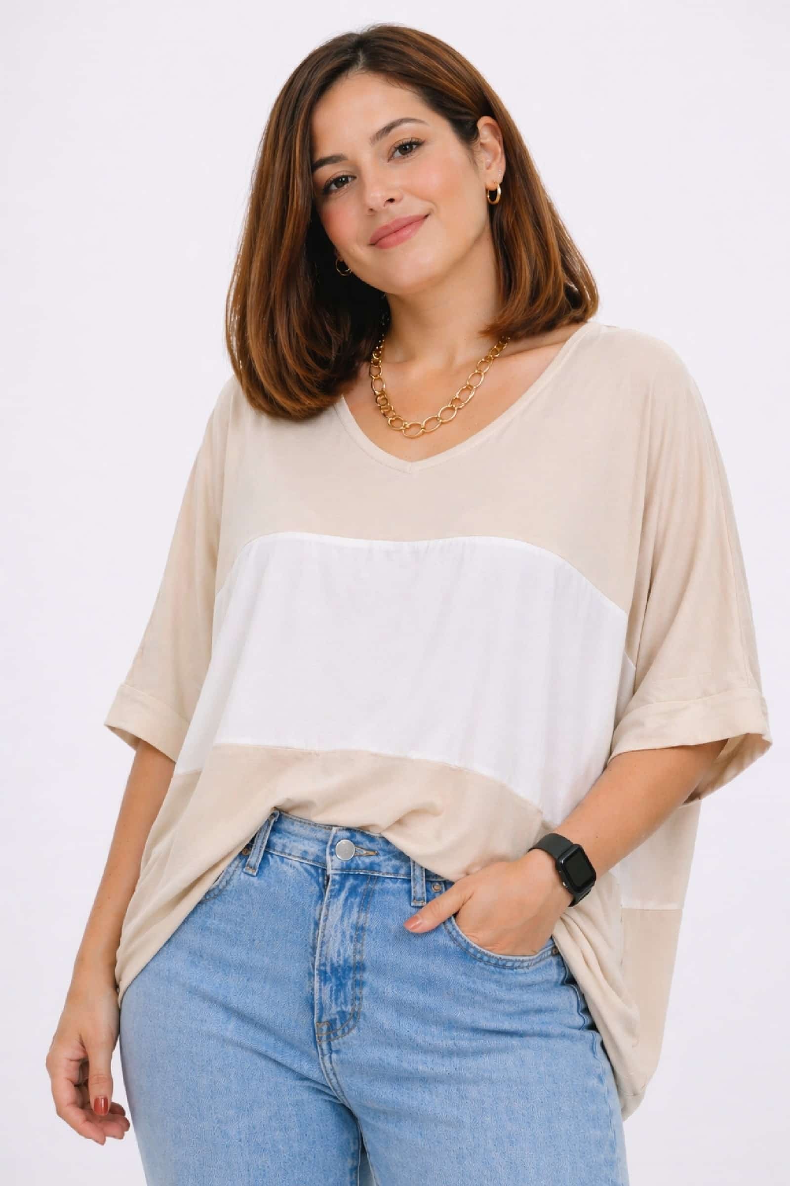 Top Bicolor Beige. Blusas Tallas Grandes.