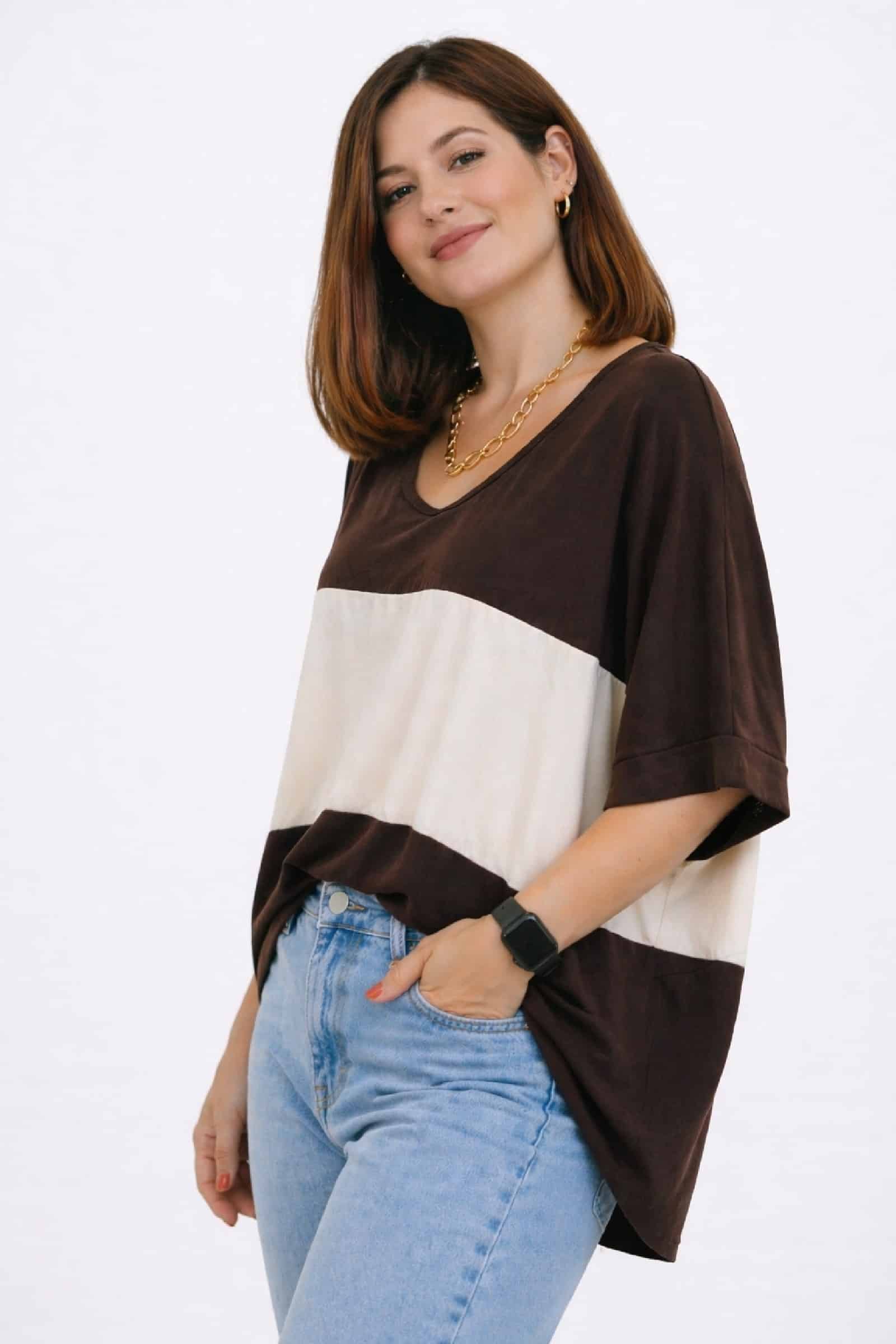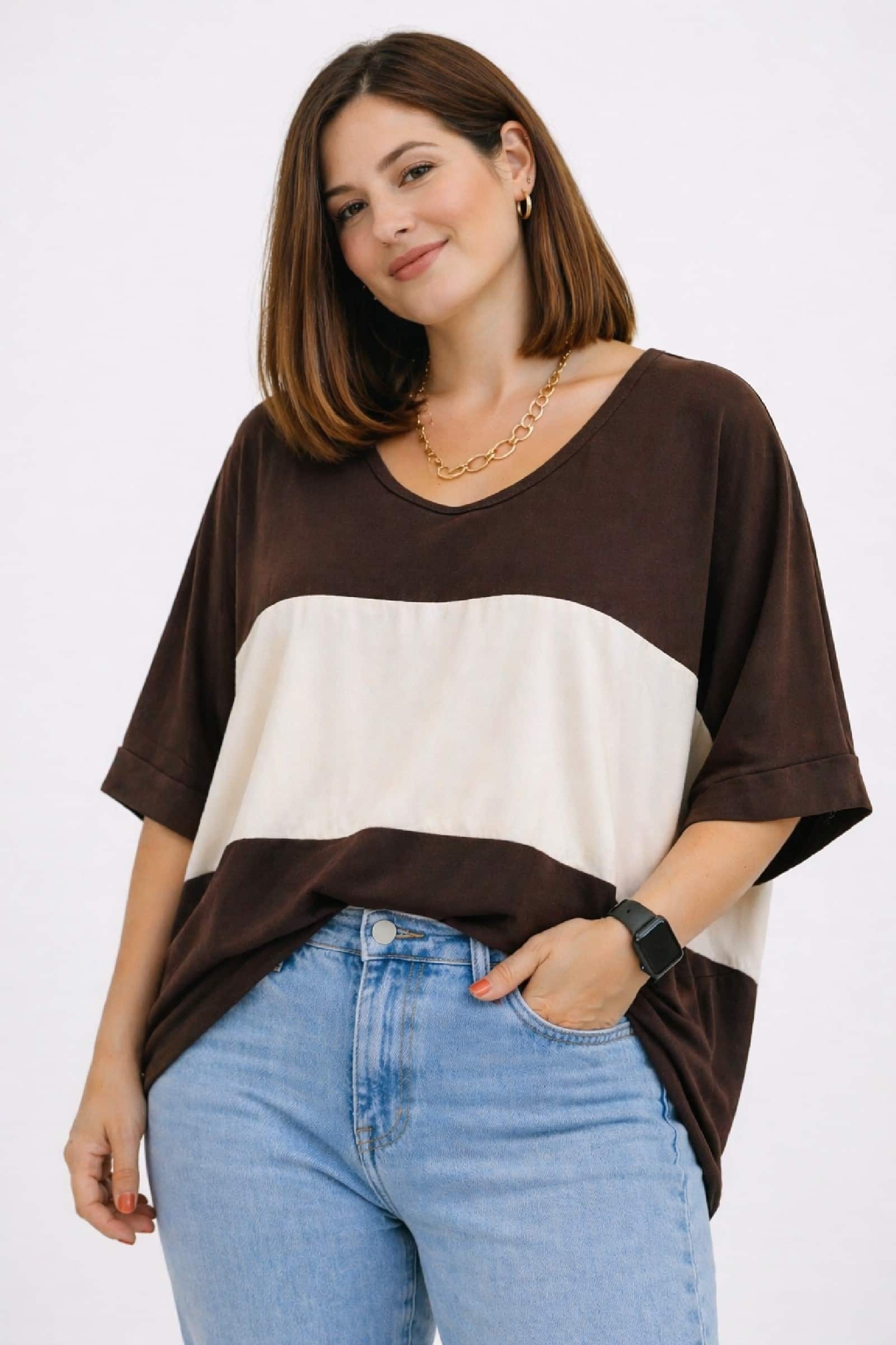 Top Bicolor Marrón. Blusas Tallas Grandes.